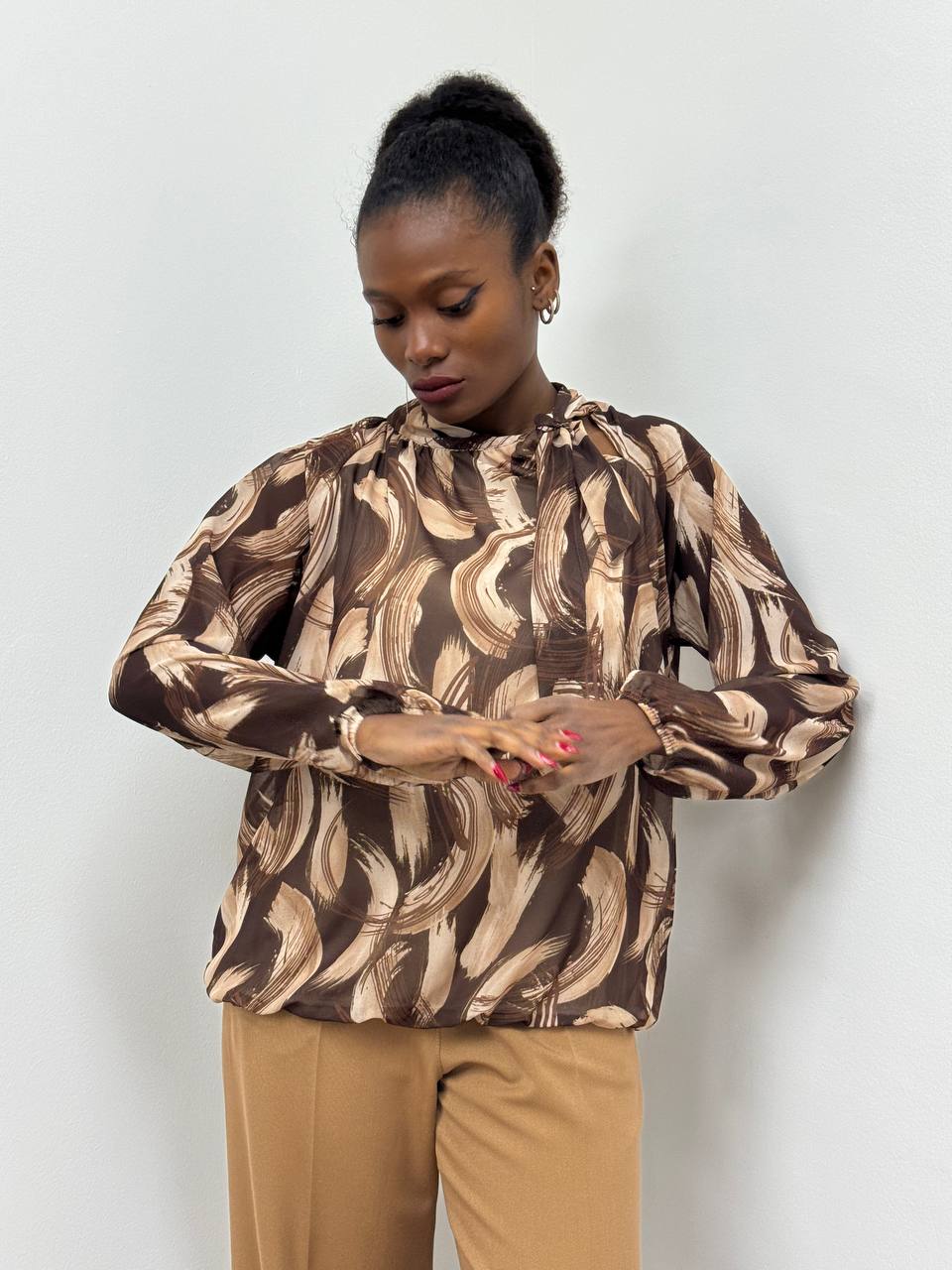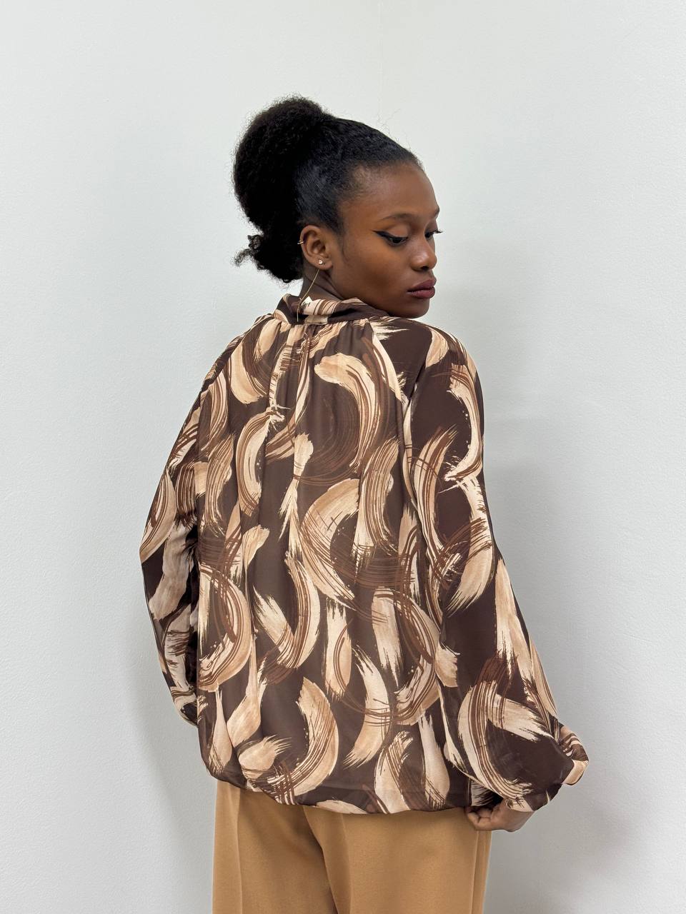 Camicia con fiocco sul collo con stampa elasticizzata sul polsino,