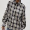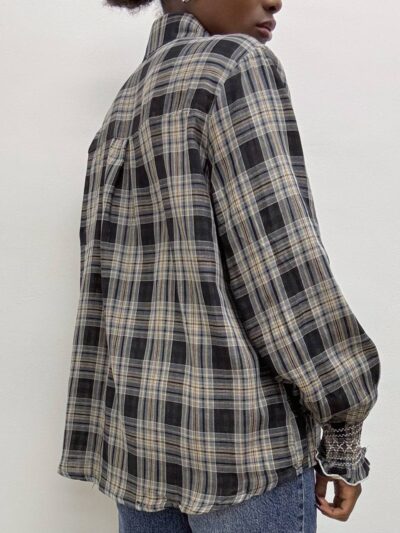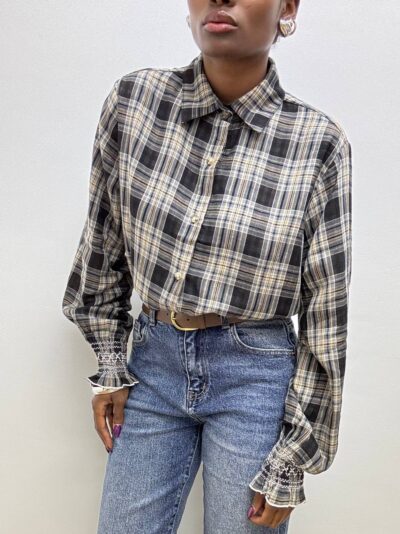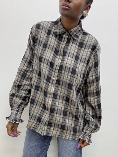 Camicia a maniche lunghe in morbido tessuto a stampa check, dallo stile casual ma curato nei dettagli. La chiusura frontale presenta un’abbottonatura tono su tono, discreta ed elegante, che valorizza la geometria del motivo a quadri senza interromperne la continuità visiva. I polsini elasticizzati aggiungono un tocco contemporaneo e funzionale, offrendo comfort e una vestibilità versatile, perfetta sia indossata con le maniche abbassate che leggermente risvoltate. Un capo trasversale, pensato per adattarsi a ogni contesto — dal tempo libero all’urban wear quotidiano.