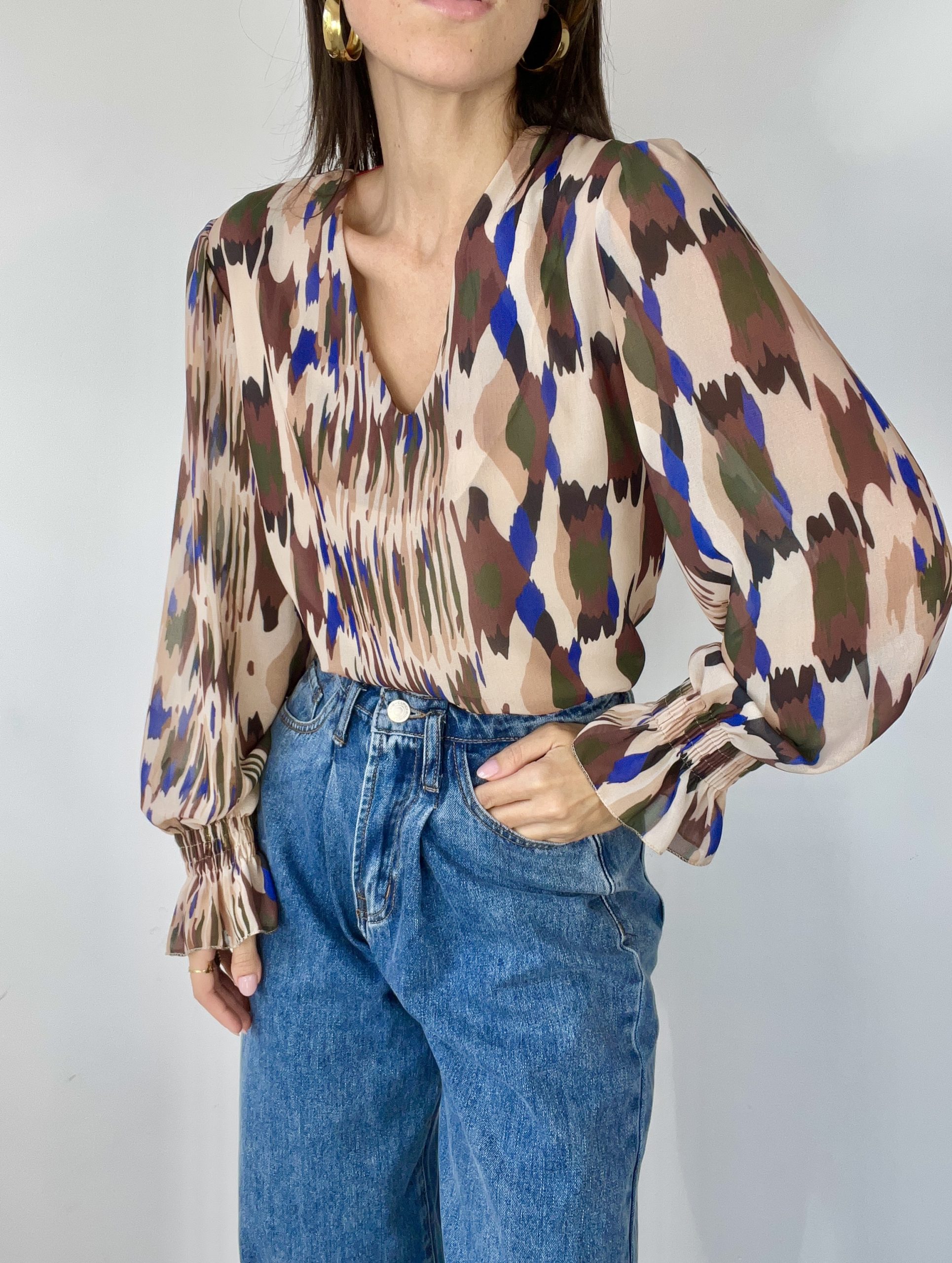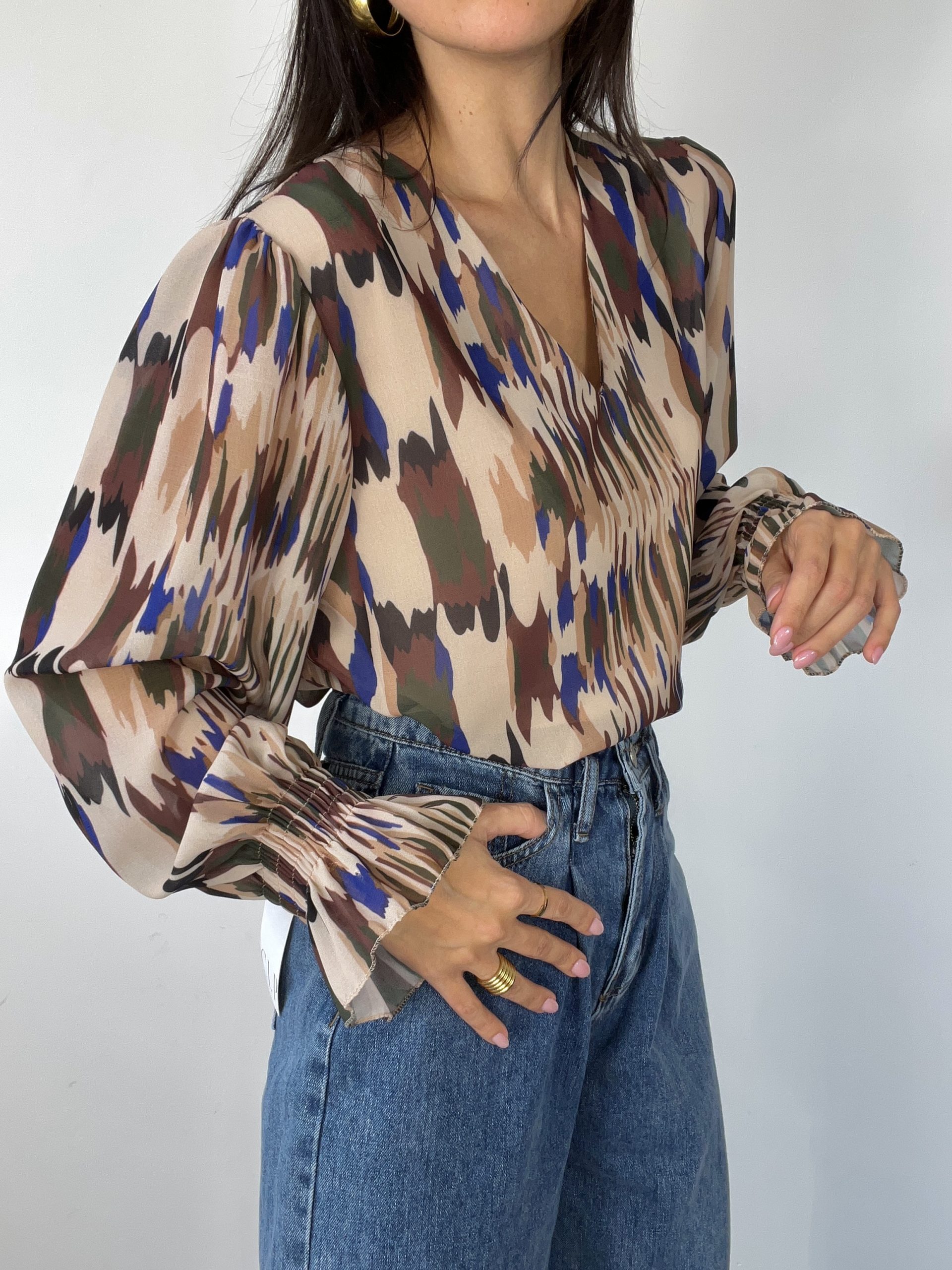 Camicia Made in Italy con scollo a V foderata , spalla leggermente pizzicata con polsino elasticizzata, morbida