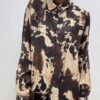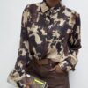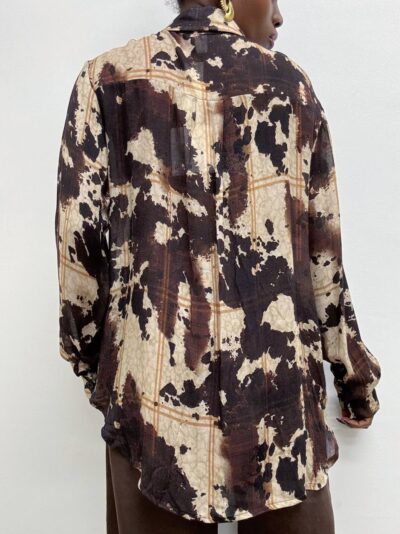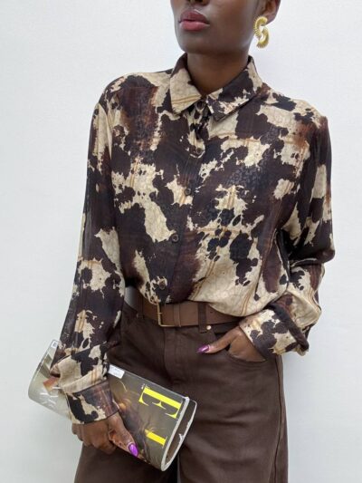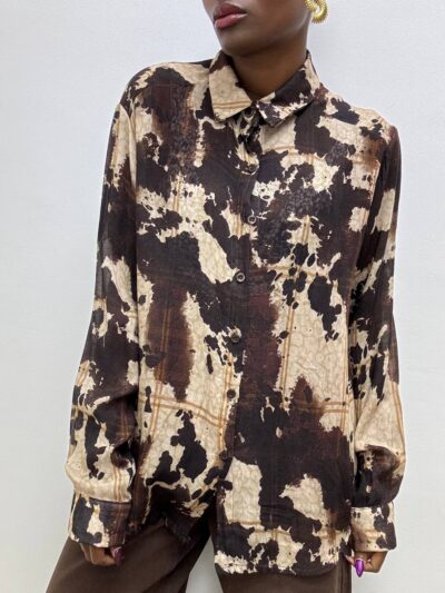 Camicia a maniche lunghe realizzata in lana e viscosa, caratterizzata da una vivace stampa muccata nei toni del cioccolato e del beige . Il taglio regolare assicura una vestibilità comoda ma strutturata, ideale sia per look casual che più audaci.