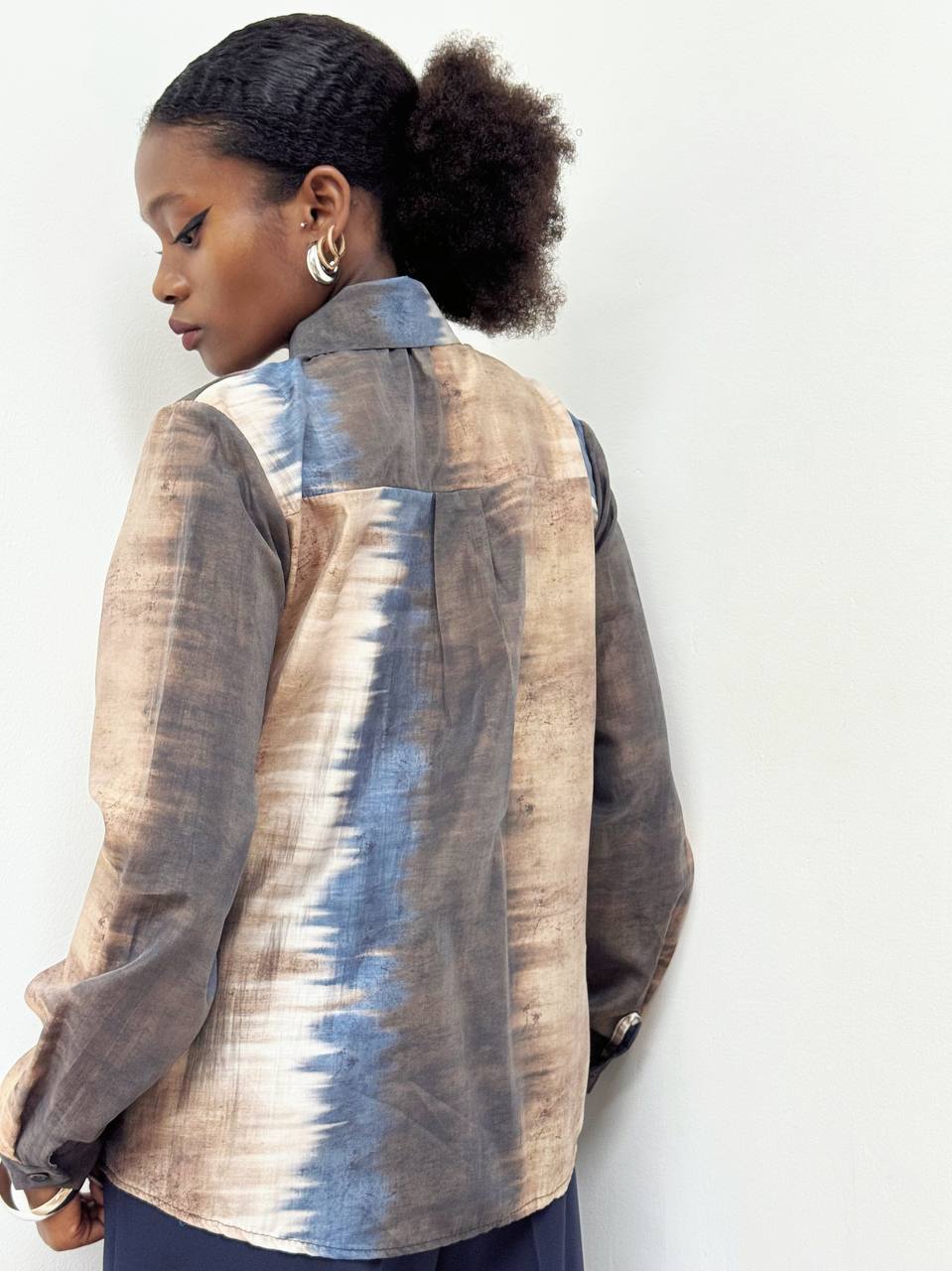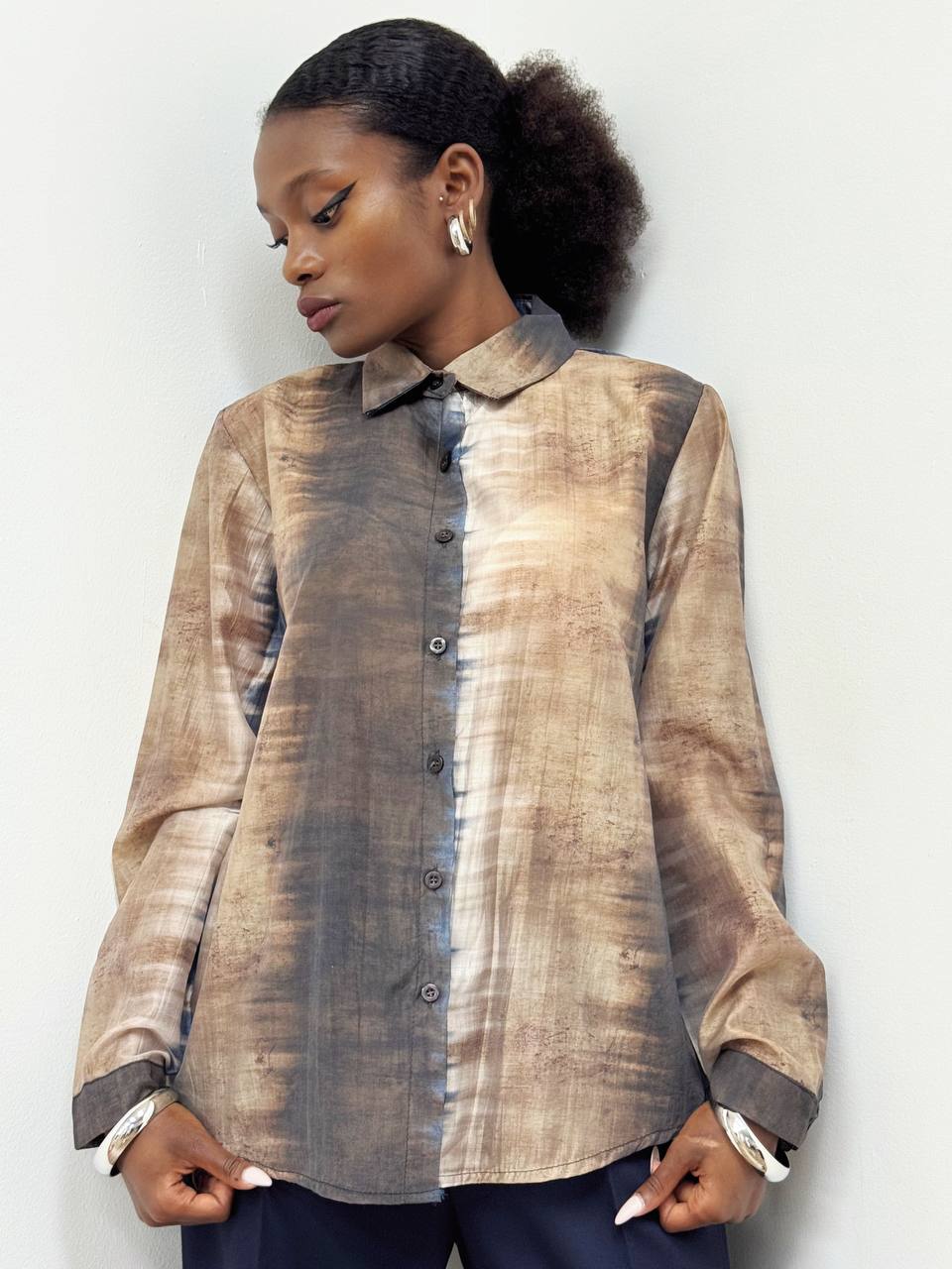 Camicia caratterizzata da una raffinata sfumatura di colore che conferisce profondità e movimento al capo. Il design a maniche lunghe è valorizzato da una abbottonatura frontale completa, che aggiunge un tocco di versatilità e praticità. Il taglio classico, unito al tessuto leggero e fluido, la rende ideale sia per look casual-chic che per occasioni più formali. Un capo distintivo, perfetto per chi ama lo stile con un tocco artistico.
