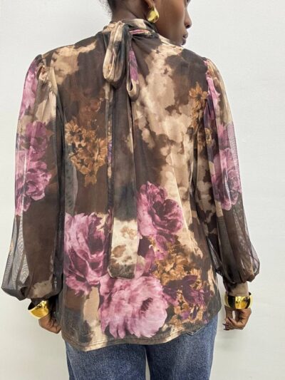 Leggera, romantica e dallo stile senza tempo, questa camicia in tulle trasparente conquista con la sua delicata stampa di rose e fiori, che si intrecciano in un disegno raffinato e femminile. Le maniche leggermente ampie donano un tocco di morbida eleganza, creando un movimento fluido e arioso.