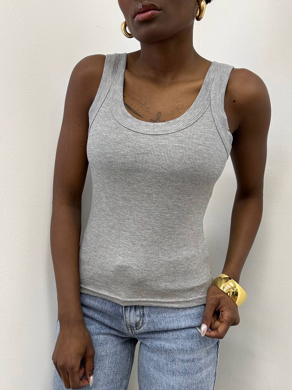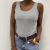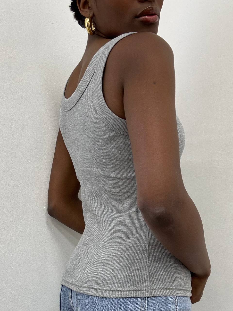 La canotta slim fit con scollo arrotondato e trama a costine è un capo essenziale e versatile, perfetto per ogni stagione. Realizzata in tessuto elasticizzato, avvolge delicatamente il corpo seguendo le forme senza costringere, garantendo comfort e libertà di movimento.
