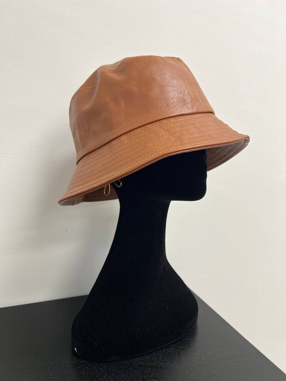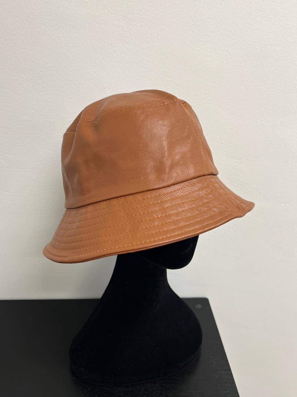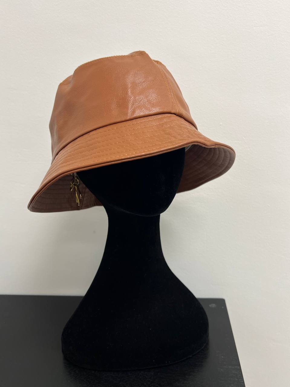 Cappello circolare in ecopelle elasticizzato a tinta unita.