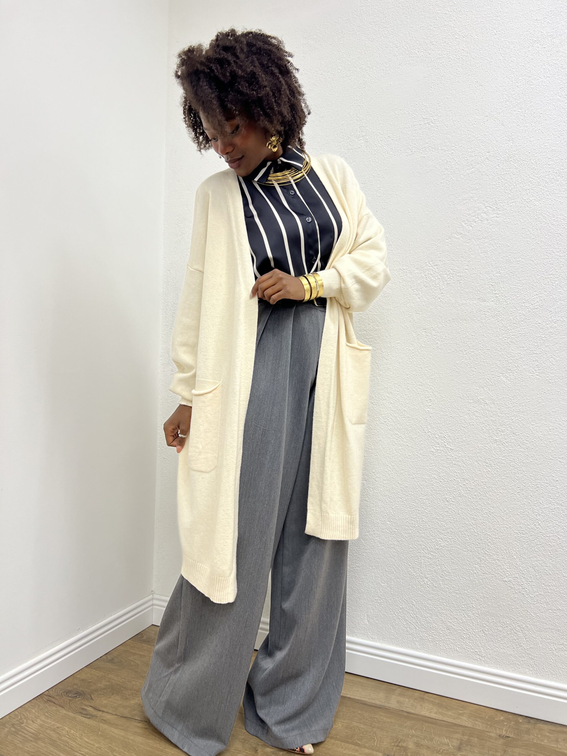Cardigan lungo elasticizzato con polsini elasticizzato.