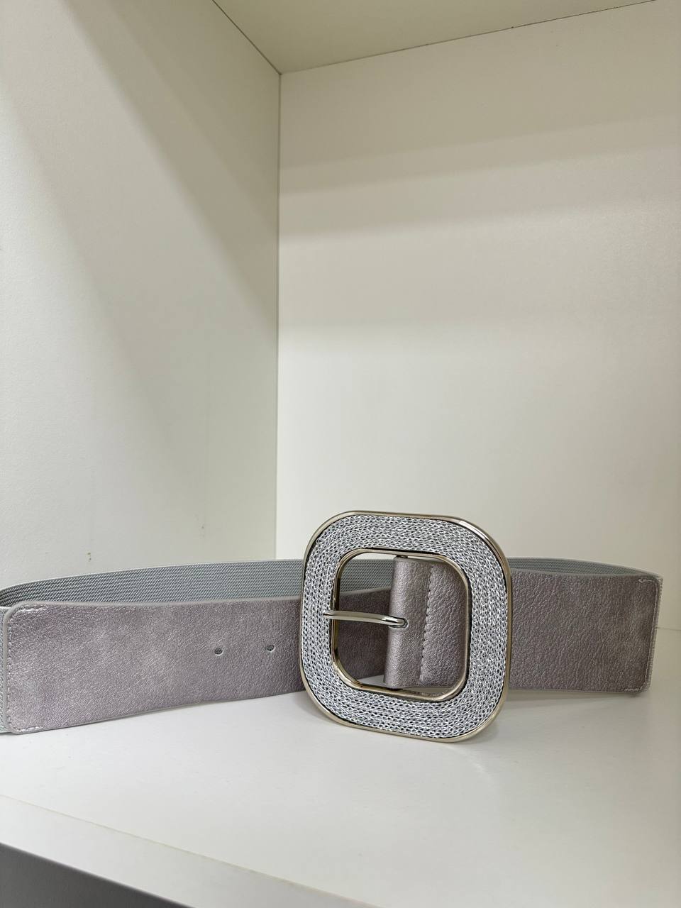 Cintura con fibbia quadrata con dettaglio di una piccola catena.