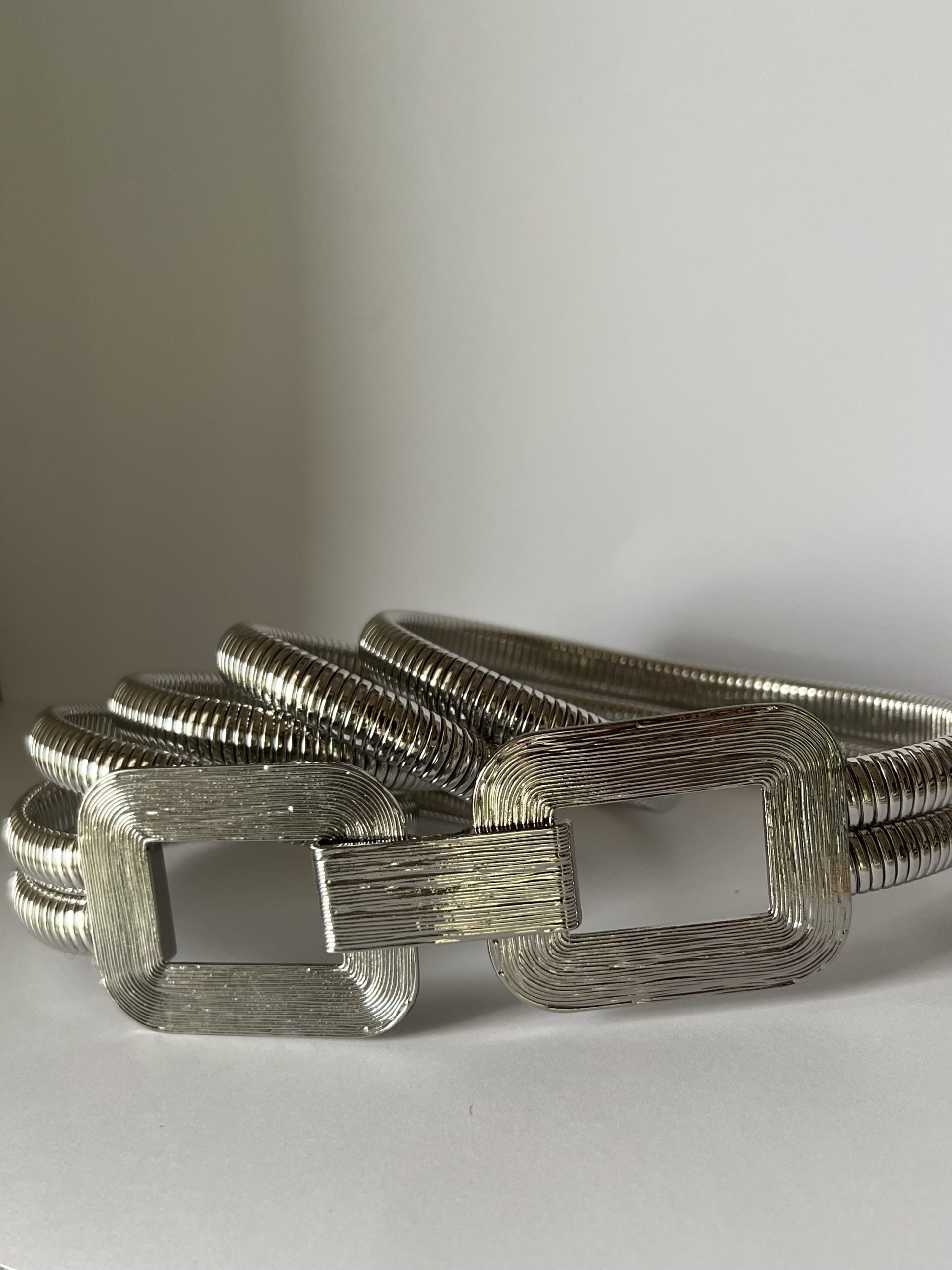 Cintura con doppia catena con fibbia rettangolare con chiusura di un gancio.