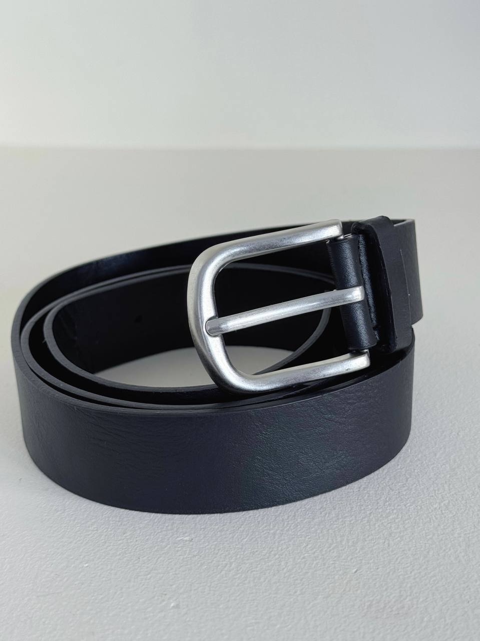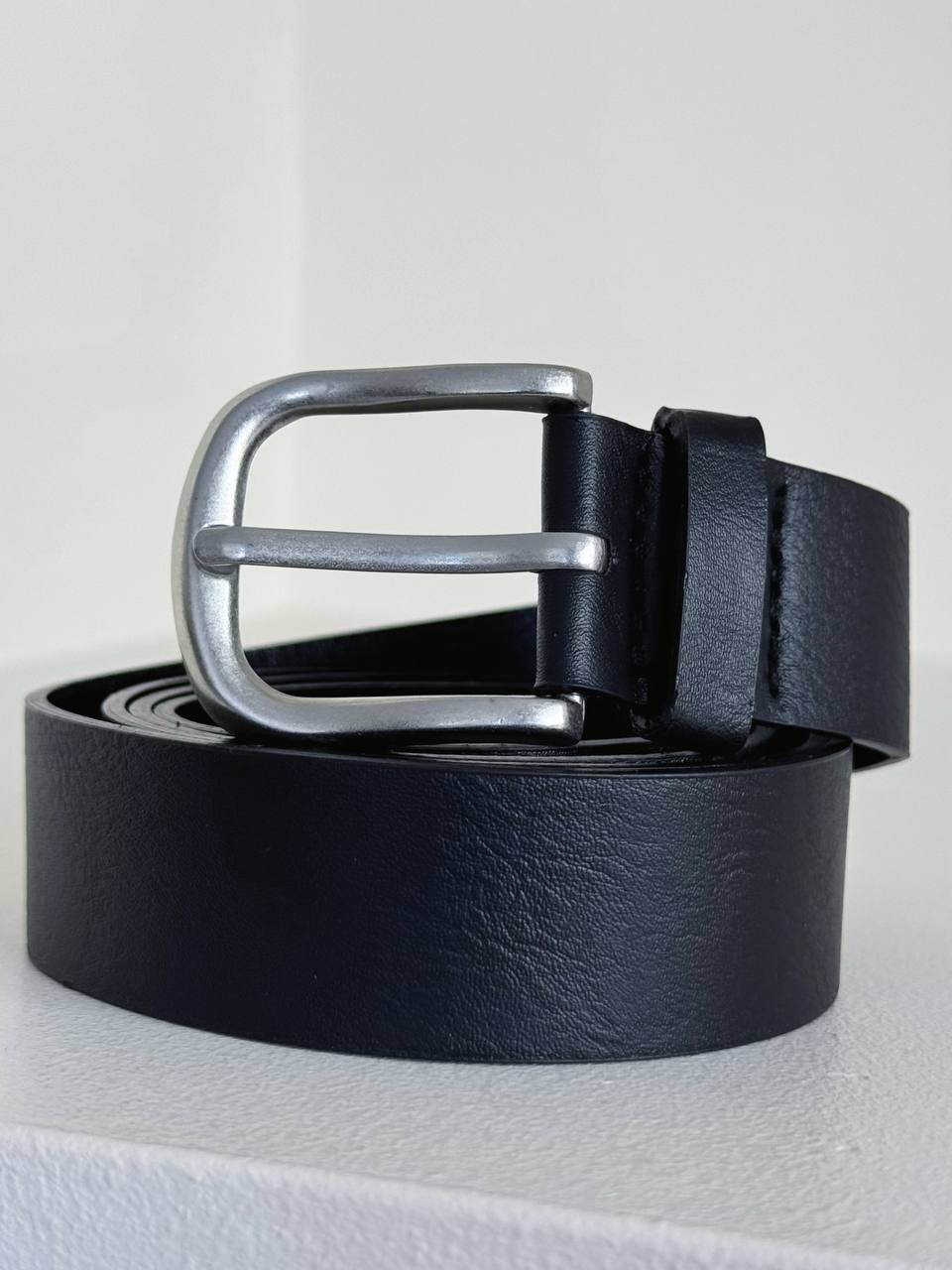 Cintura con fibbia argentata in ecopelle.