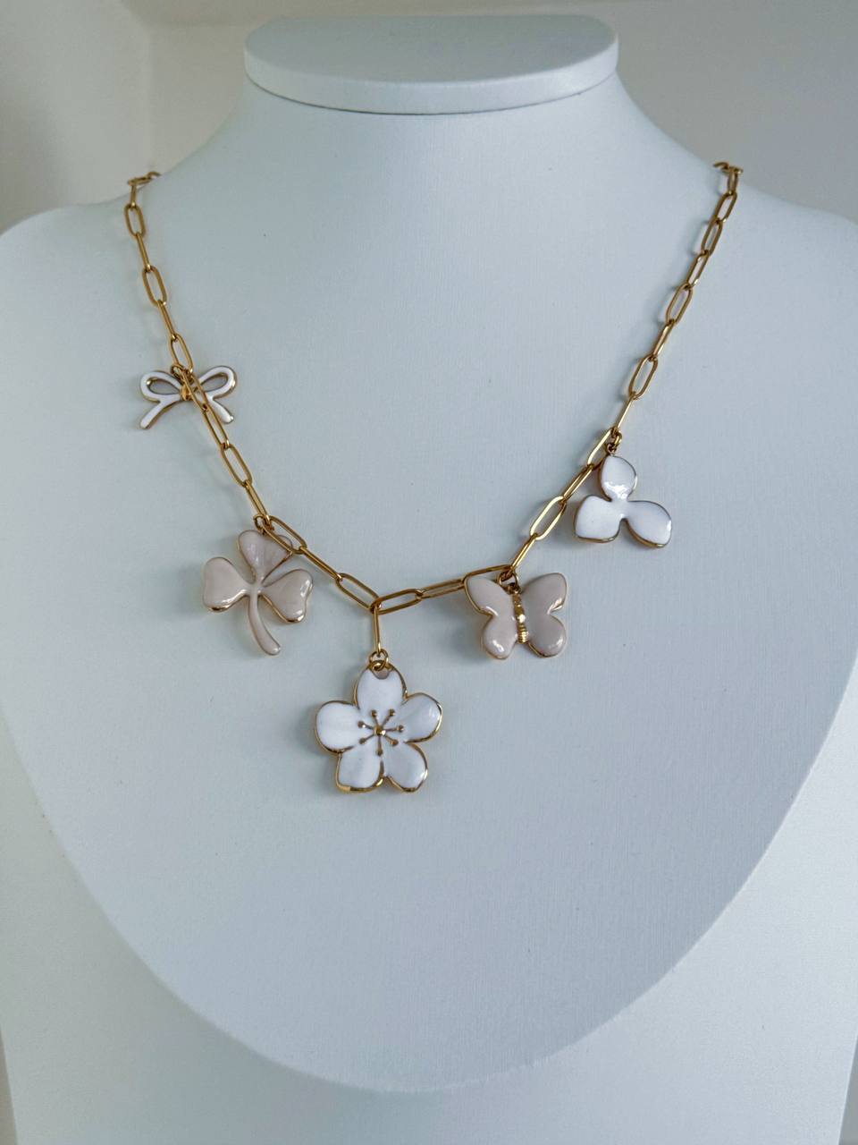 Collana regolabile con ciondolo con fiore e fiocco. Regolabile.