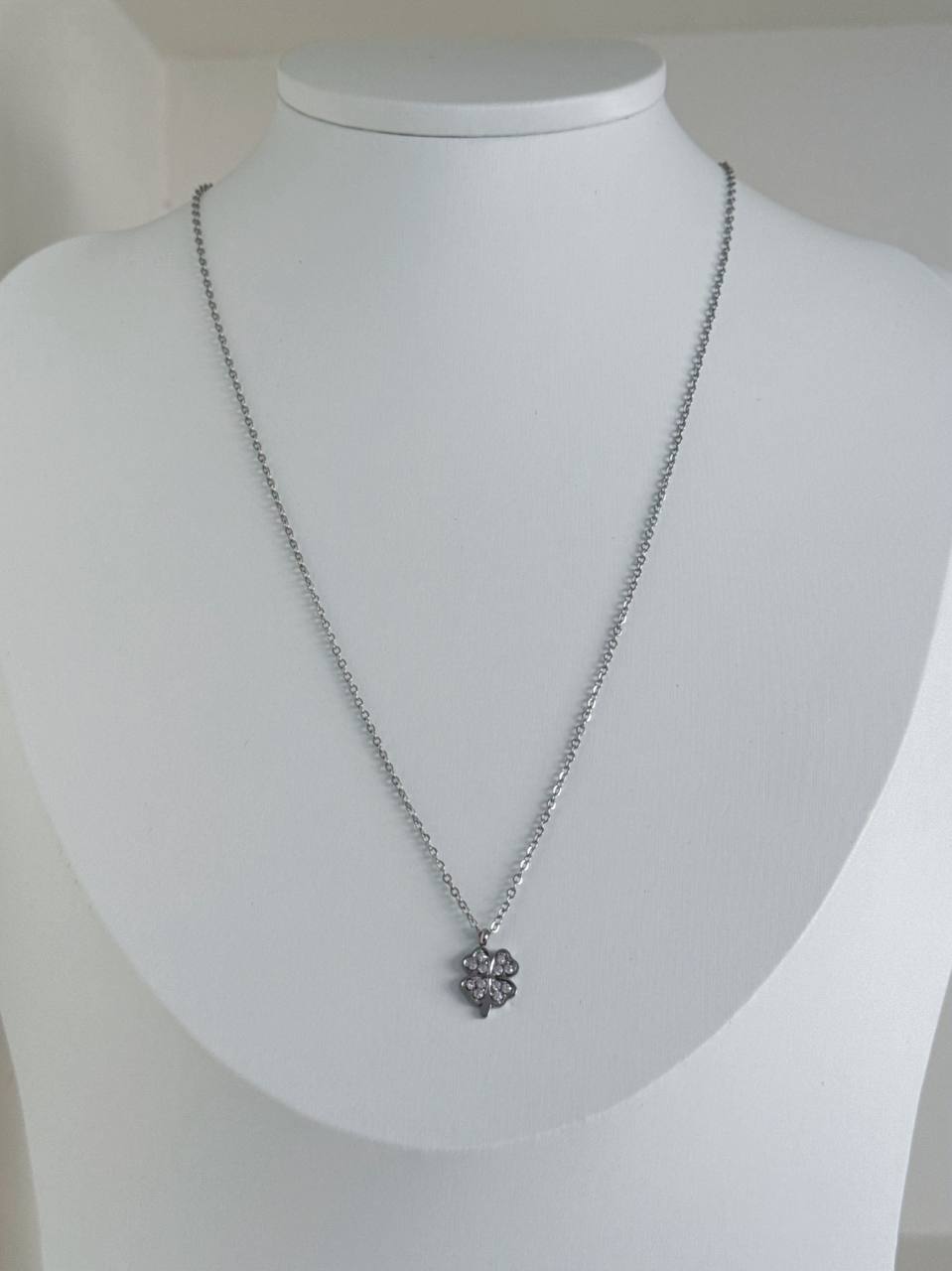 Collana pendente con quadrifoglio brillantinato. Regolabile.