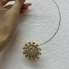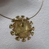 Collana a forma circolare con gancio di chiusura ad incastro con dettaglio di pendente con incorporata la spilla.