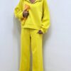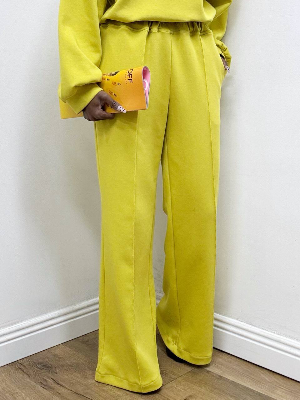 Completo in misto cotone composto da una maglia leggera con scollo a V e maniche morbide e dal pantalone a gamba larga con elastico posteriore, coulisse e taschine. Il mix perfetto di comfort e stile senza sforzo. Pancino compatibile.