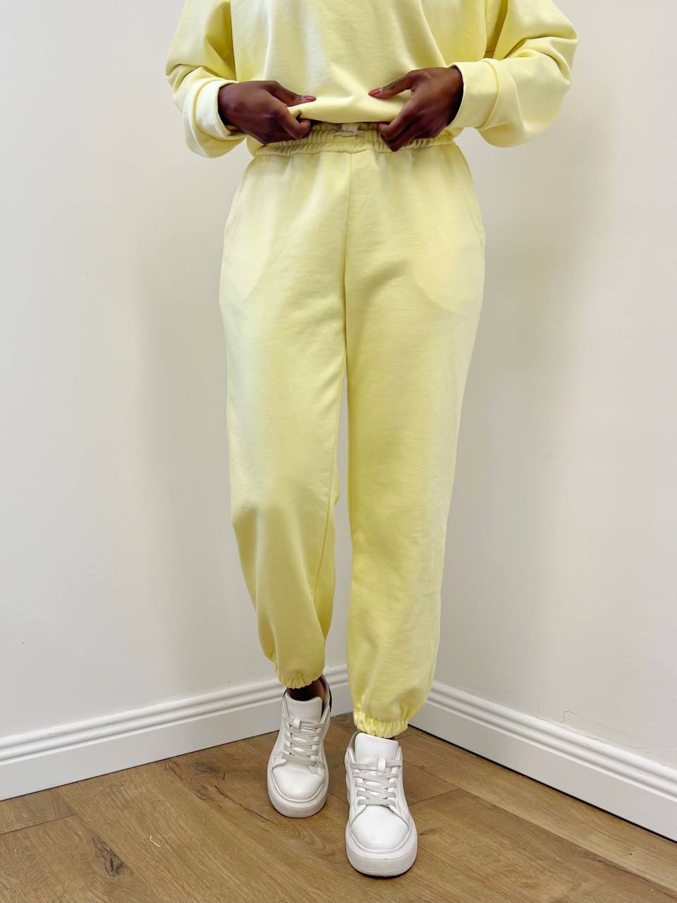 Pantalone elasticizzato sia su punto vita che sui polsini.