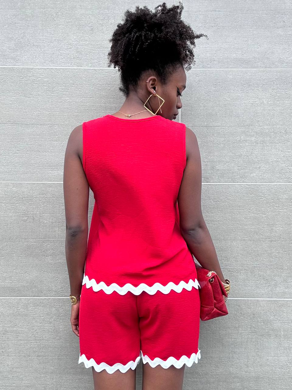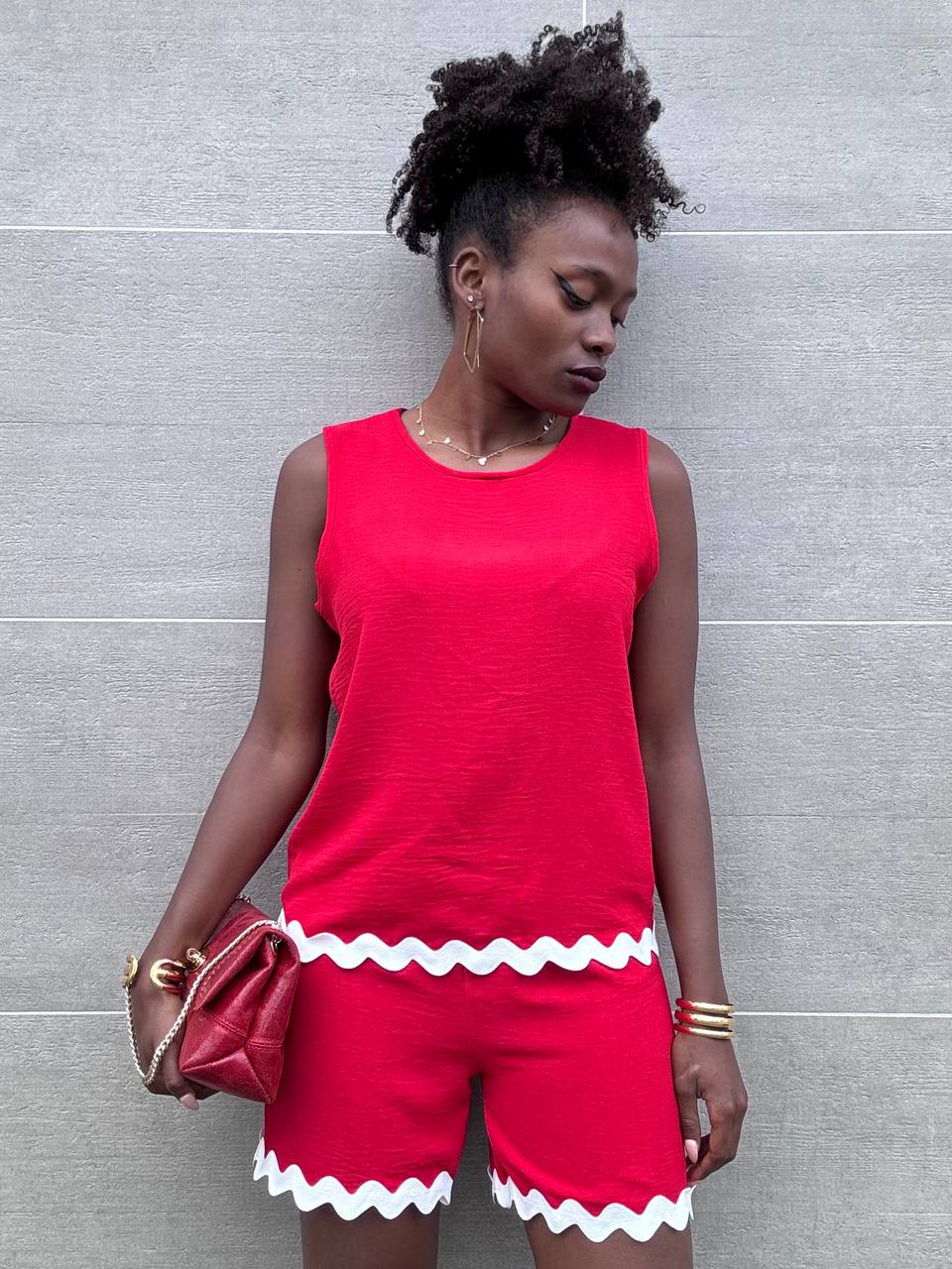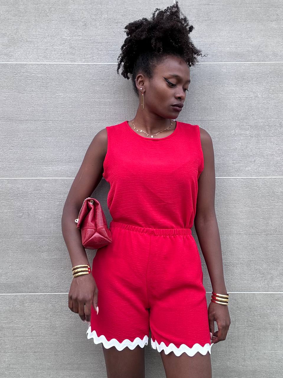 Canotta smanicata a tinta unita con dettaglio bordo ondulato sulla parte finale.