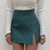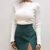 Pantagonna dal design elegante e contemporaneo, realizzato in tessuto fluido che valorizza la silhouette. Caratterizzato da una zip laterale invisibile, sapientemente nascosta nella cucitura per garantire una vestibilità impeccabile e una linea pulita. Il capo presenta un delicato mini spacco sul fondo, che aggiunge un tocco di femminilità e movimento alla struttura. Ideale per look formali o casual chic, da abbinare a camicie morbide o top strutturati.