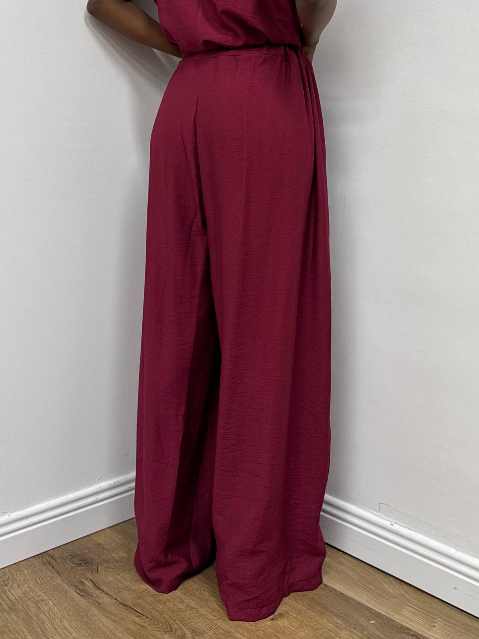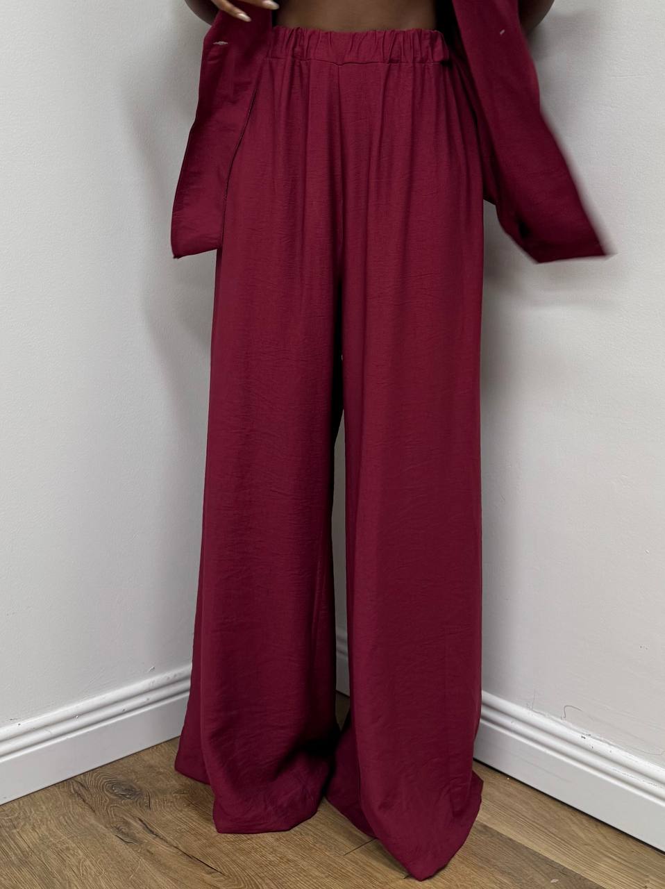 Pantalone elasticizzato sul punto vita a palazzo a tinta unita. Pancino compatibile