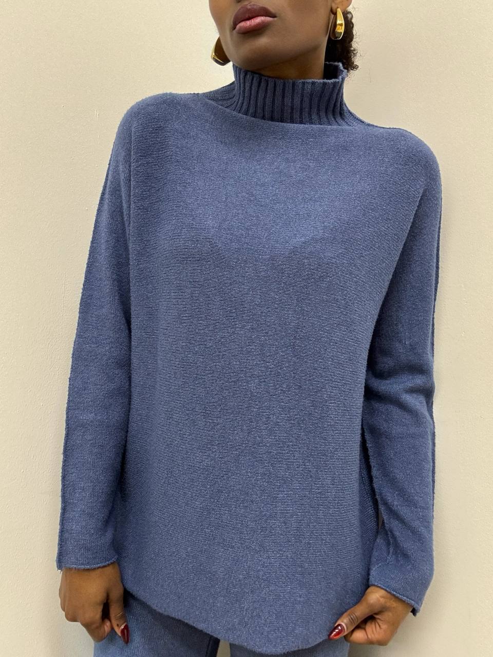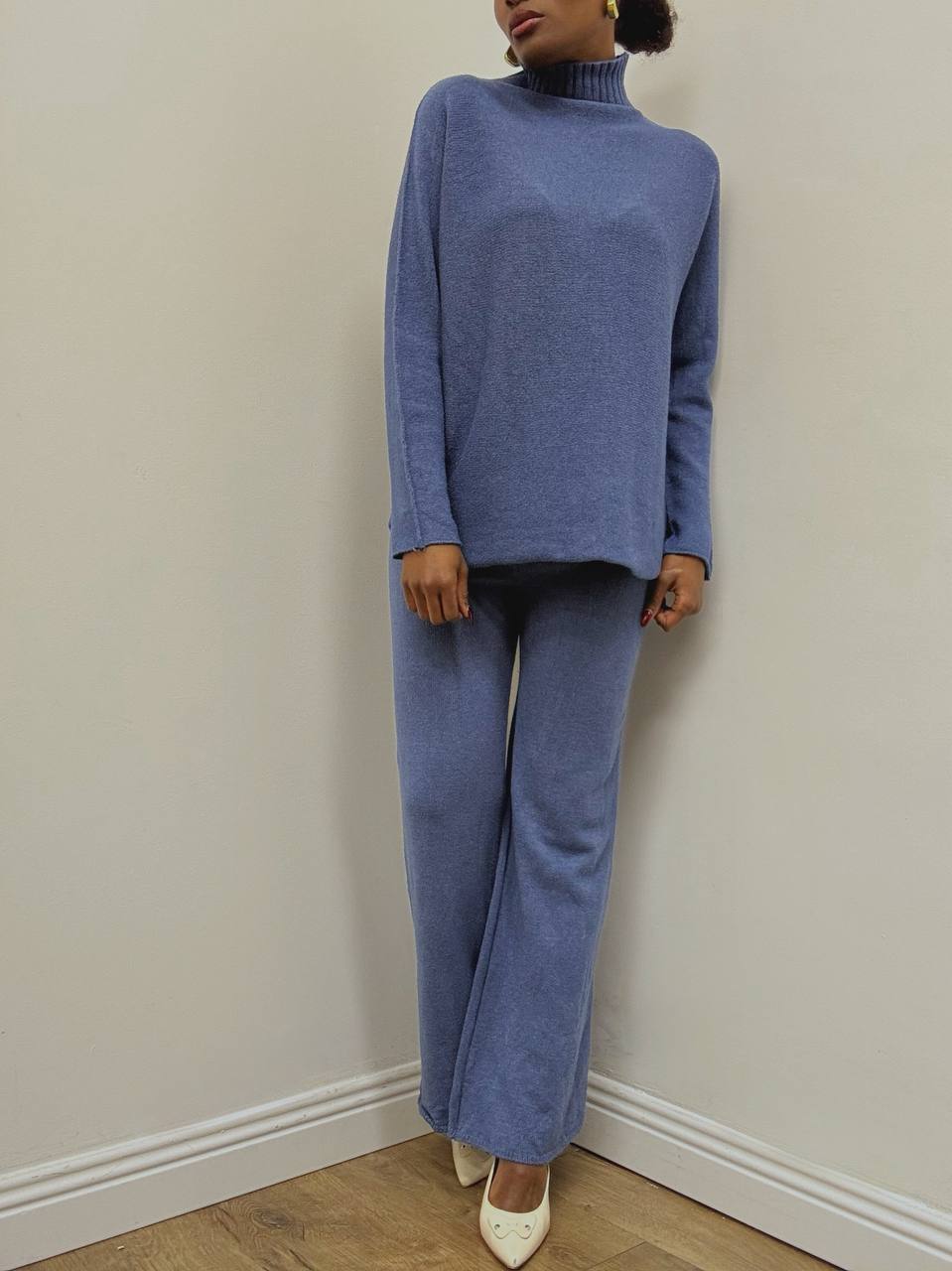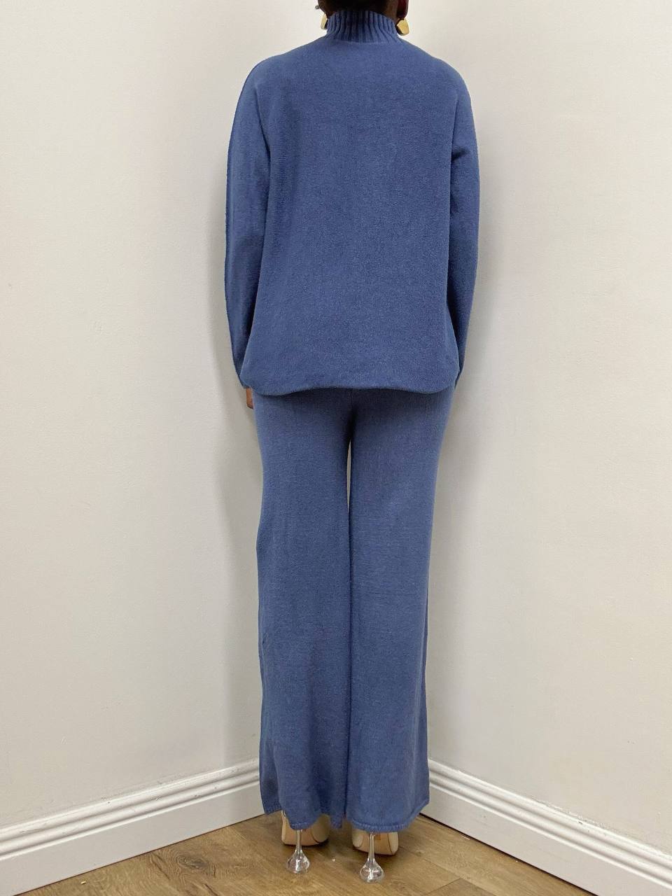 Set due pezzi in maglioncino elasticizzato, composto da top a collo alto dal fit confortevole e pantalone coordinato con vita elasticizzata e linea a zampa che slancia la silhouette. Realizzato in misto viscosa e nylon, il tessuto è morbido al tatto, fluido e piacevolmente avvolgente, garantendo comfort e vestibilità ottimale per tutto il giorno. Un set versatile e raffinato, ideale da indossare sia insieme che separatamente, perfetto per look casual-chic o più ricercati. Made in Italy, sinonimo di qualità e cura nei dettagli.