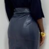 Gonna a vita alta in ecopelle a tinta unita .