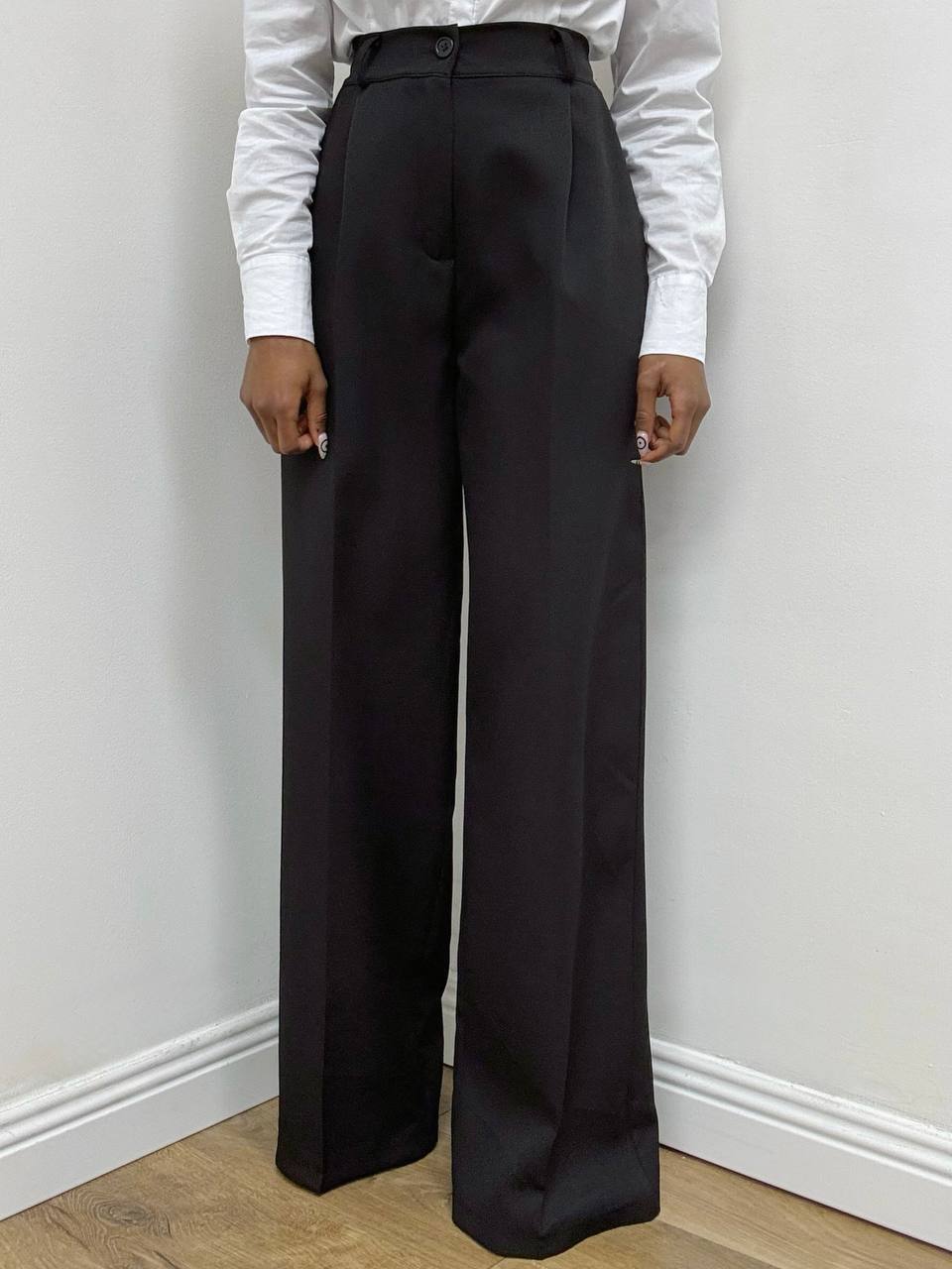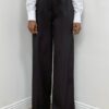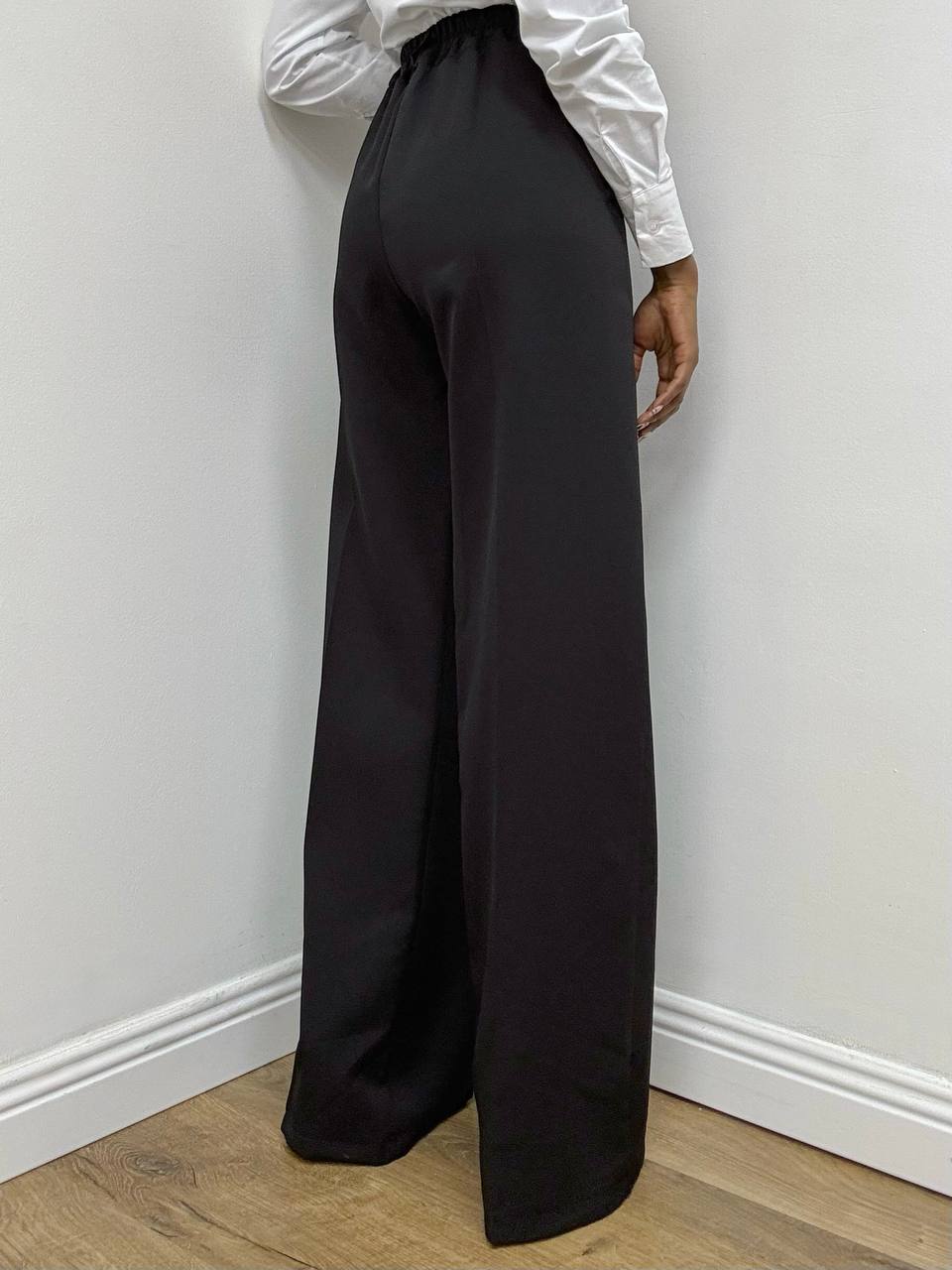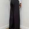Il pantalone a palazzo, a vita alta, slancia la figura e dona movimento grazie alla linea ampia e fluida della gamba. La chiusura frontale è rifinita con zip e bottone, mentre sul retro è presente un inserto elasticizzato che garantisce comfort e migliore adattabilità al punto vita, senza rinunciare allo stile impeccabile.