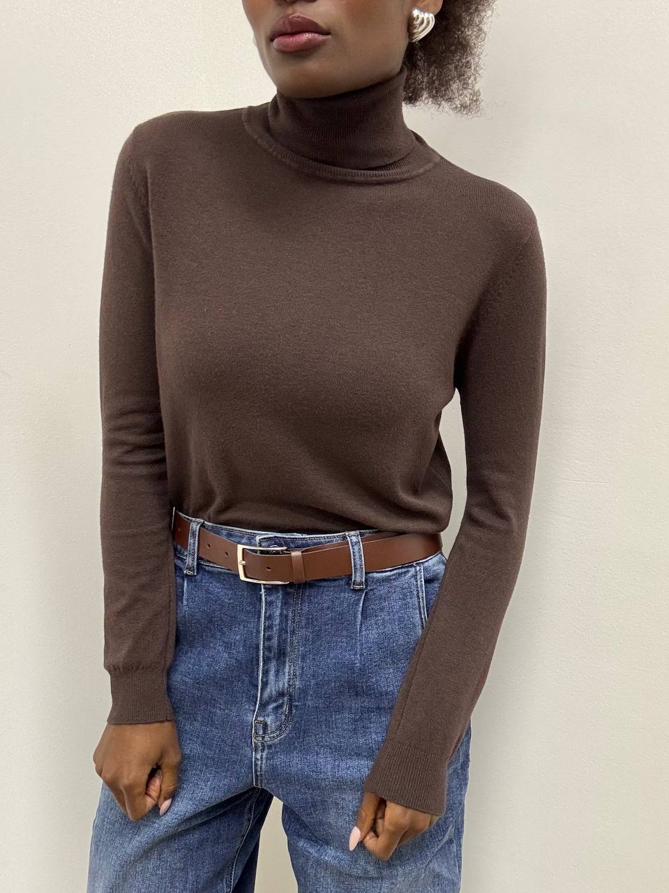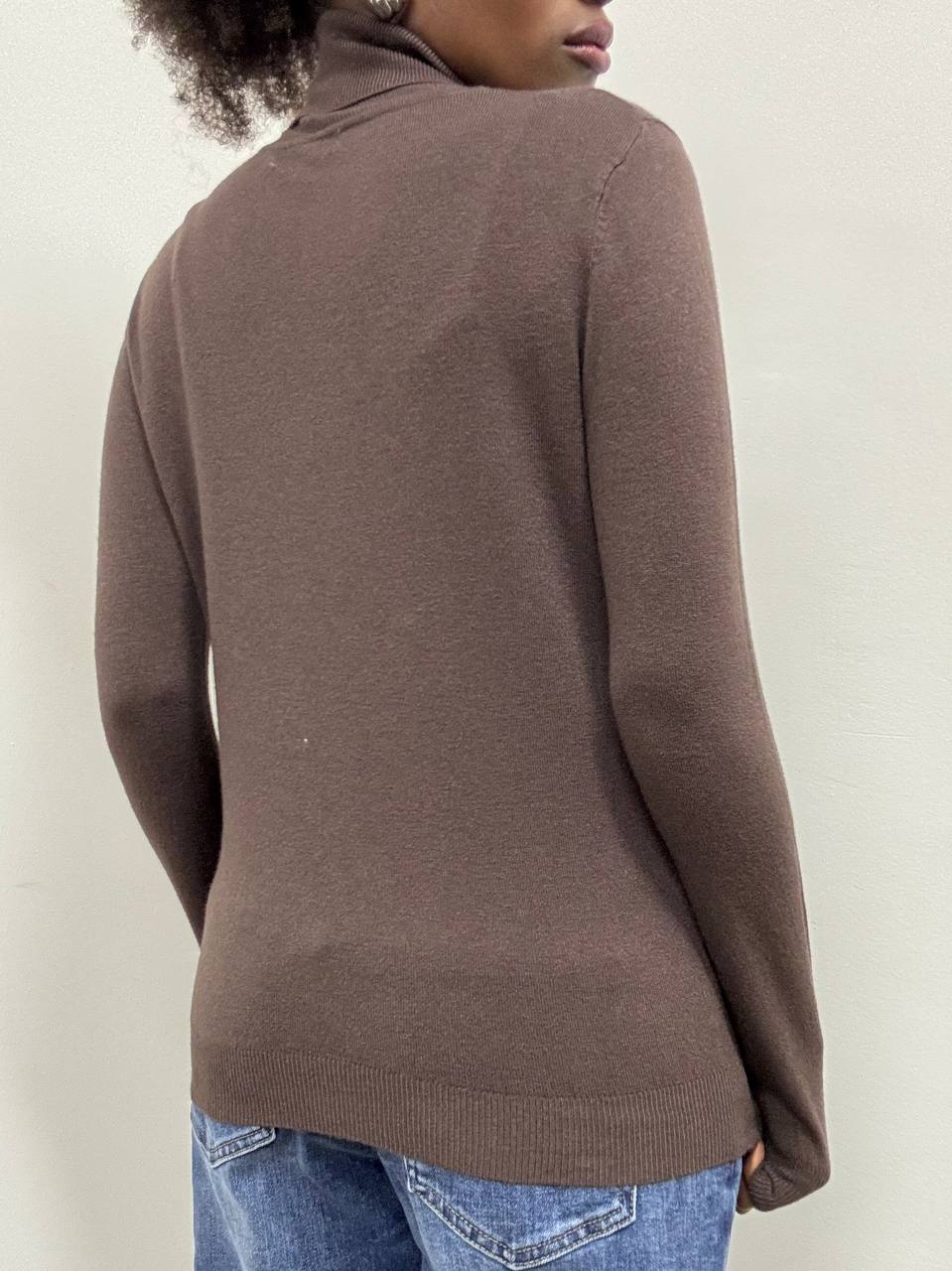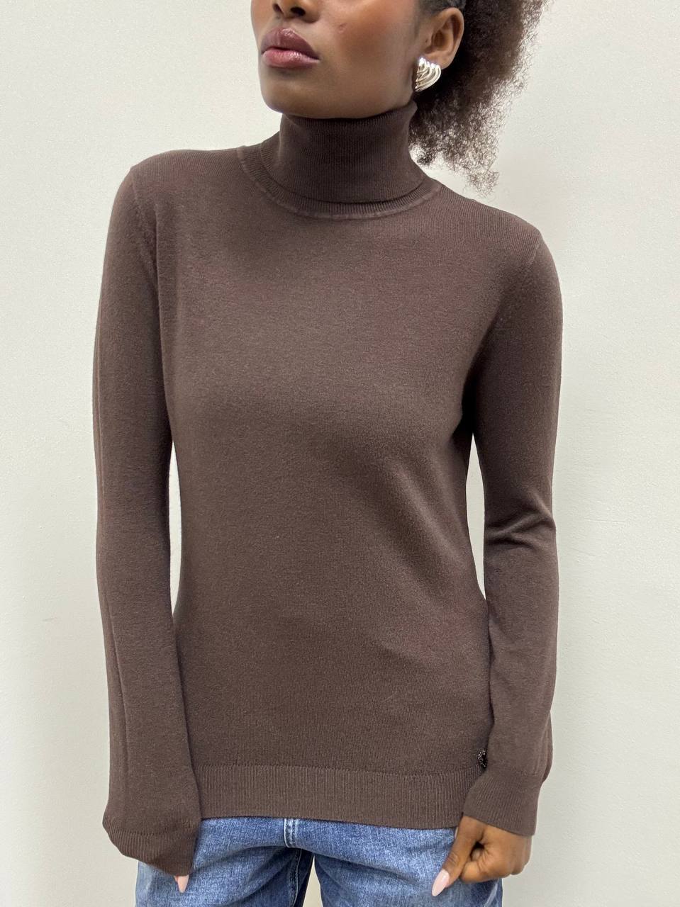Questo dolcevita è elegante e minimal, è realizzato in tessuto elasticizzato che assicura una vestibilità comoda e aderente. Il design classico del collo alto è arricchito da un raffinato dettaglio di una mini placchetta color argento sulla parte finale. Un capo versatile, perfetto da indossare da solo o sotto giacche e blazer, ideale per completare look casual chic o più formali.