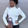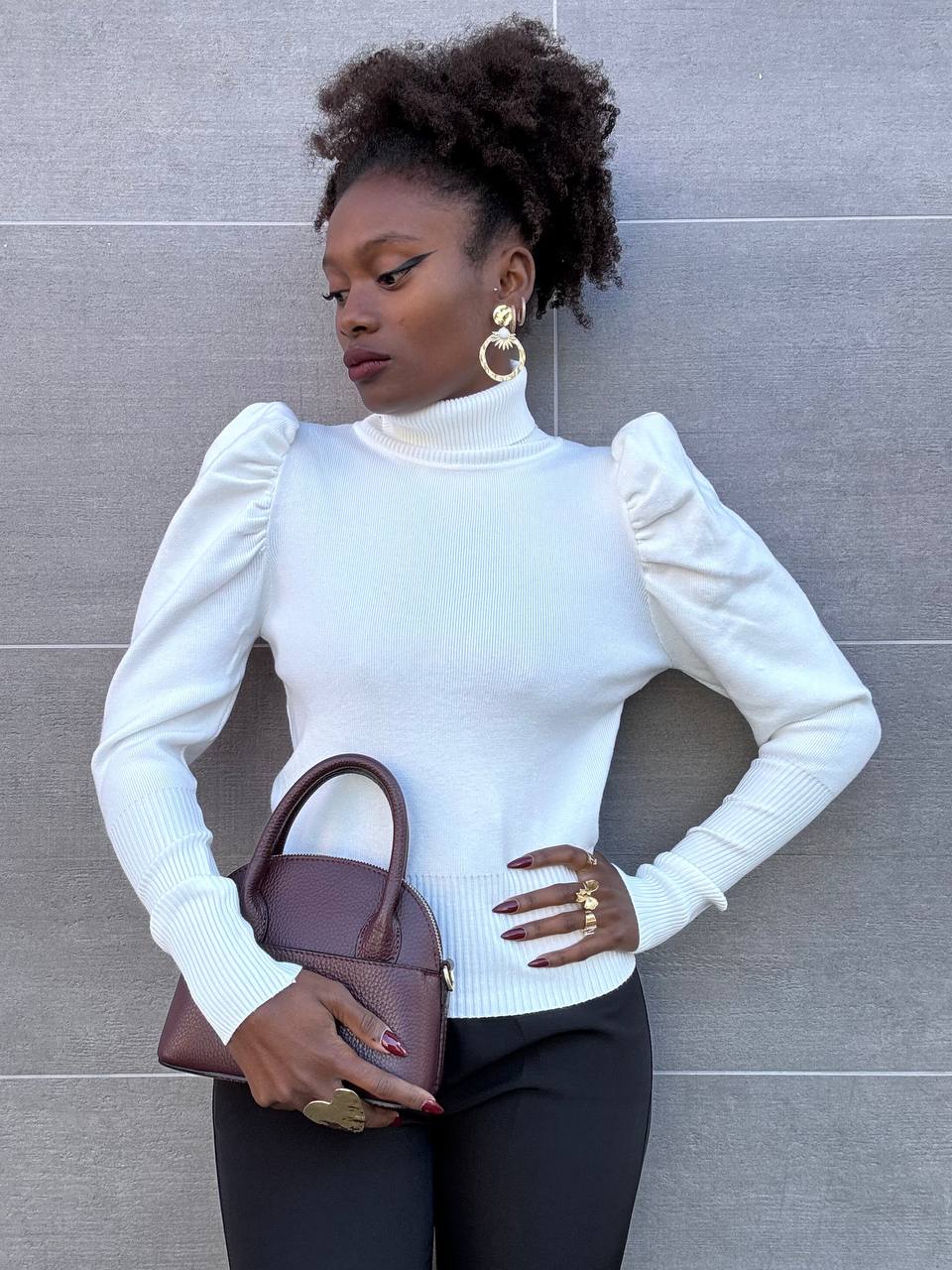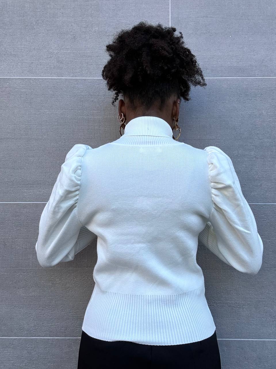 Dolcevita elasticizzato a tinta unita con maniche a sbuffo.