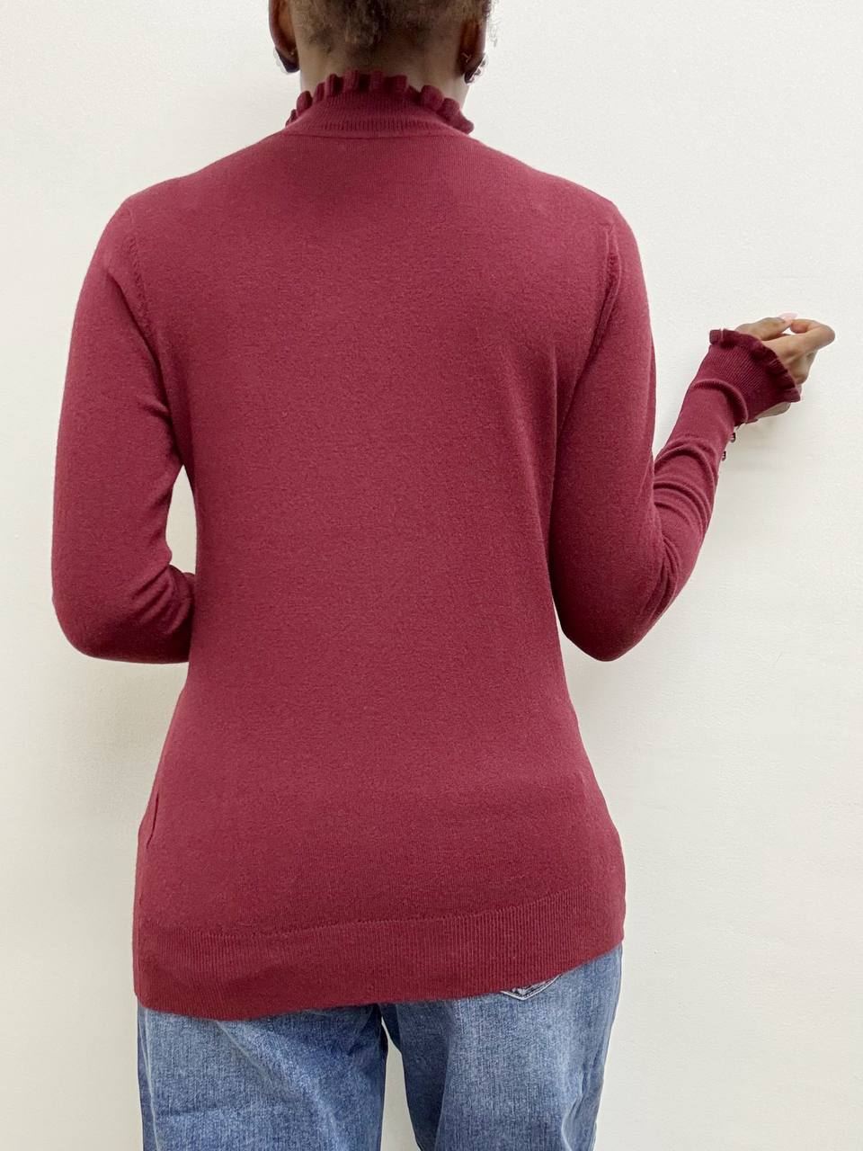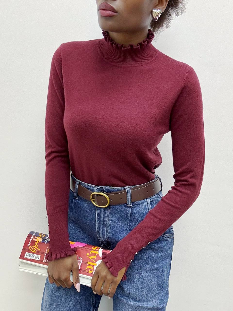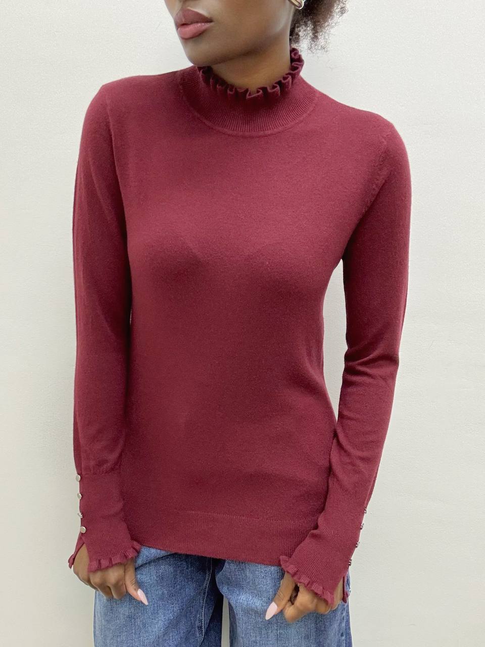 Elegante e versatile, questo dolcevita a tinta unita si distingue per il suo collo arricciato elasticizzato, che dona un tocco di raffinatezza senza rinunciare al comfort. Il design è impreziosito da tre bottoni decorativi, un dettaglio discreto ma distintivo che aggiunge carattere al capo. Perfetto da indossare da solo o sotto giacche e cardigan, è un must-have per un look curato in ogni occasione.