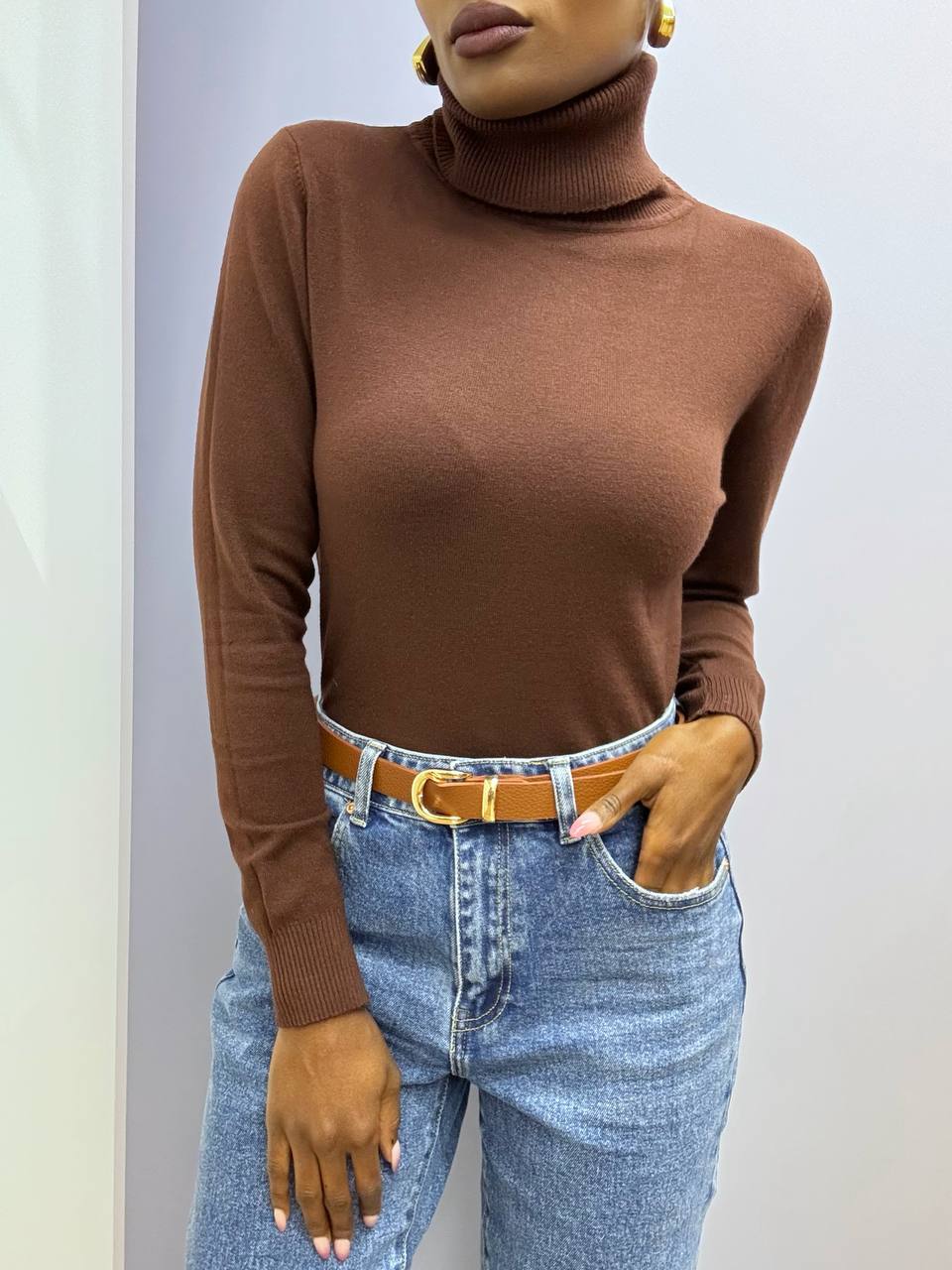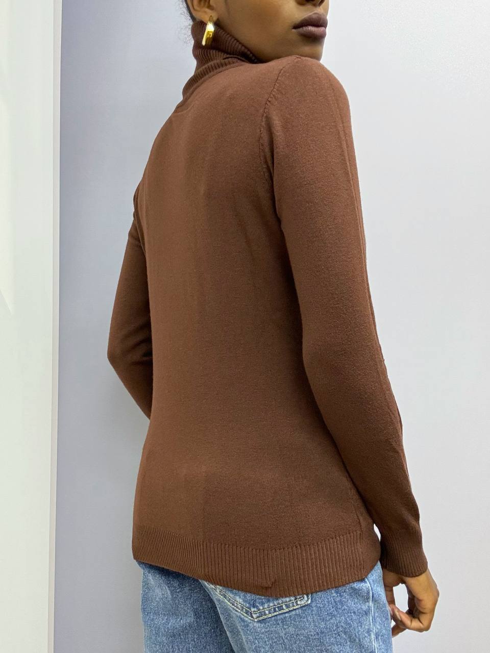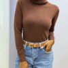 Questo dolcevita è elegante e minimal, è realizzato in tessuto elasticizzato che assicura una vestibilità comoda e aderente.  Un capo versatile, perfetto da indossare da solo o sotto giacche e blazer, ideale per completare look casual chic o più formali.
