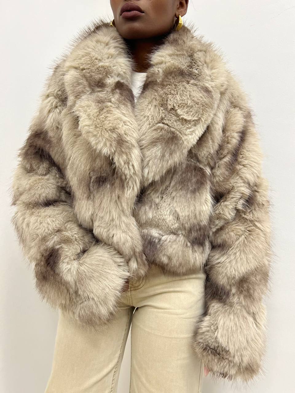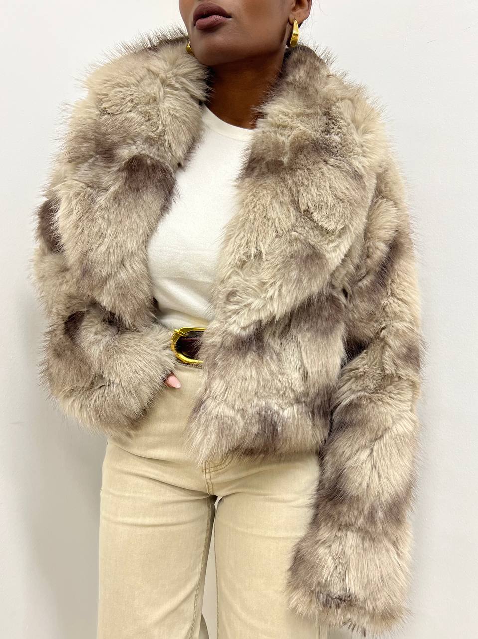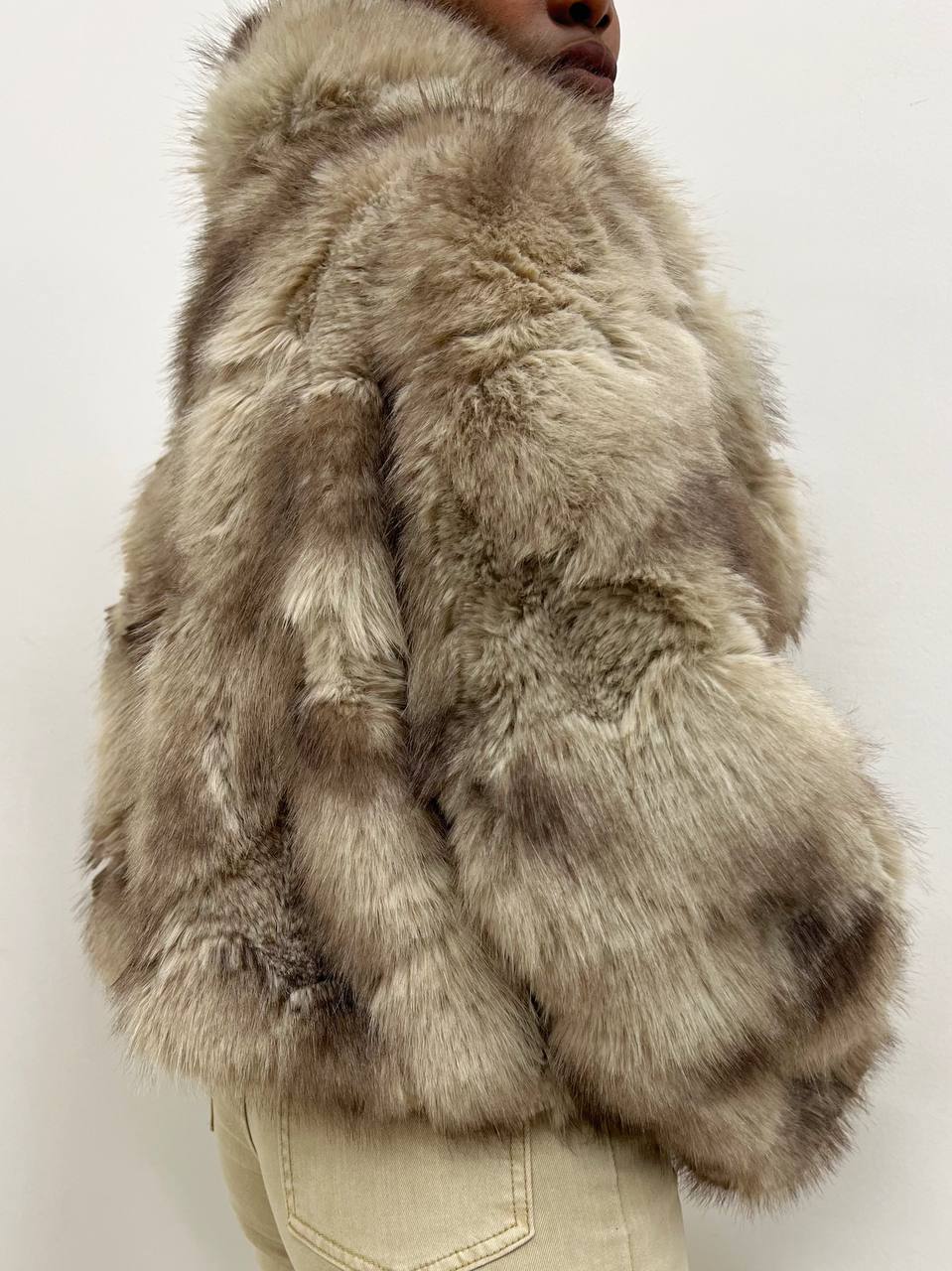 Pelliccia dal fascino sofisticato, caratterizzata da un effetto degradé con un raffinato mix di tonalità marrone, grigio e crema, che si fondono armoniosamente creando un look elegante e ricercato. Il modello presenta una chiusura frontale con due gancettini di chiusura nascosti all’interno del tessuto, per una linea pulita e contemporanea. Foderata internamente, assicura comfort e calore, rendendola ideale per affrontare le giornate più fredde con stile. Un capo distintivo e versatile, perfetto per aggiungere un tocco di classe a ogni outfit.