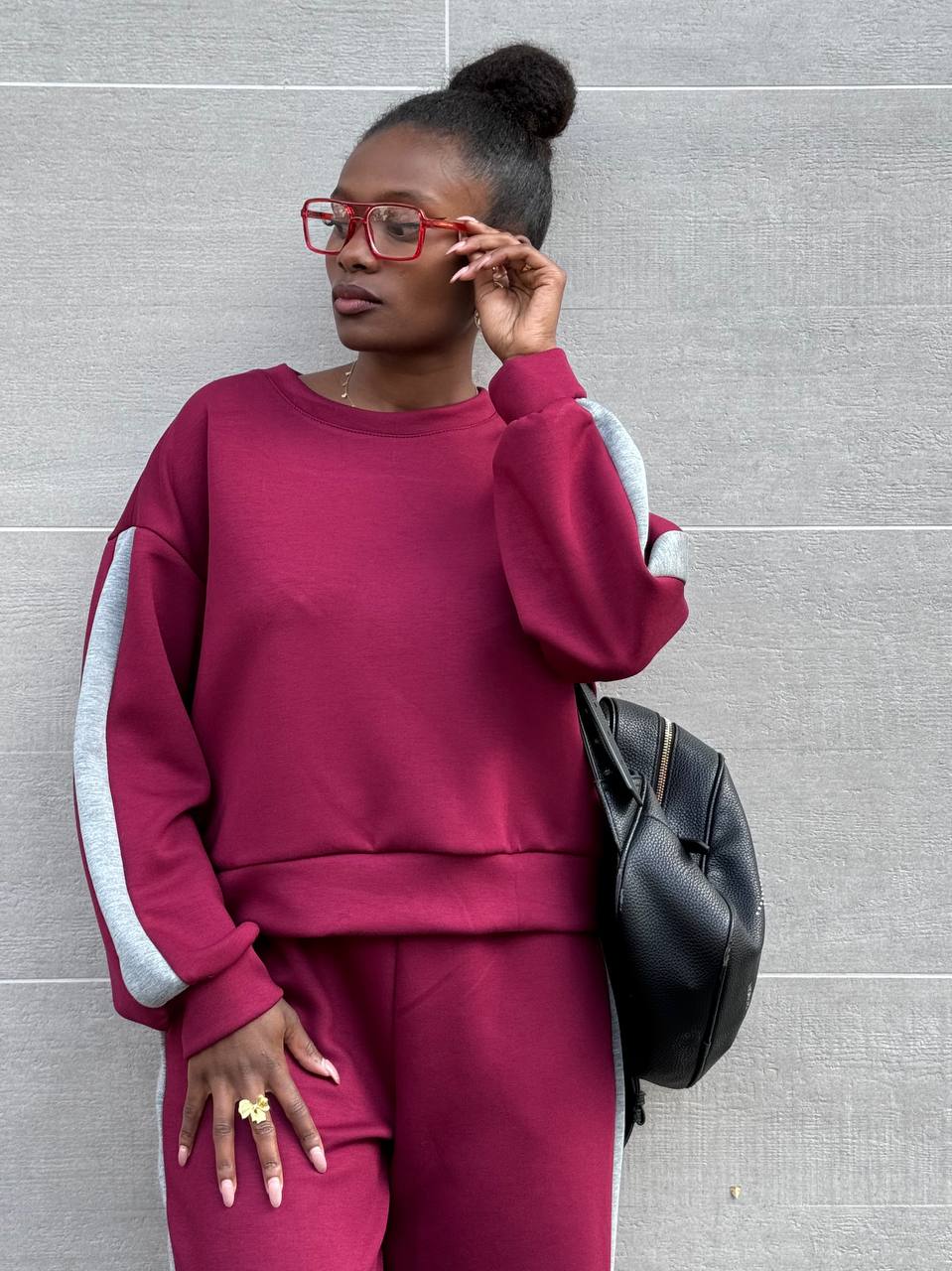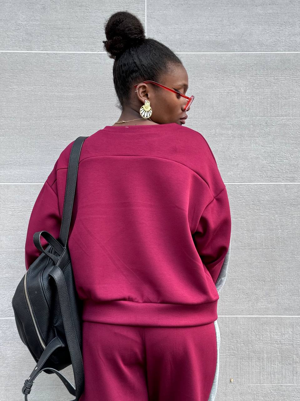 Felpa a girocollo a tinta unita con banda laterale . Elasticizzata.