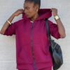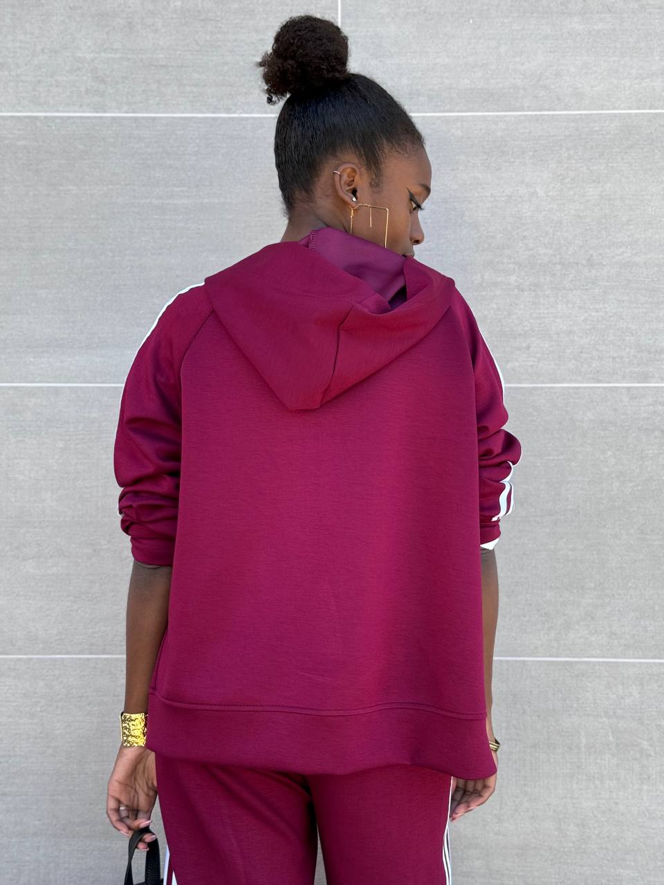 Felpa con cappuccio con cerniera con banda laterale su tutta la lunghezza della felpa a tinta unita.