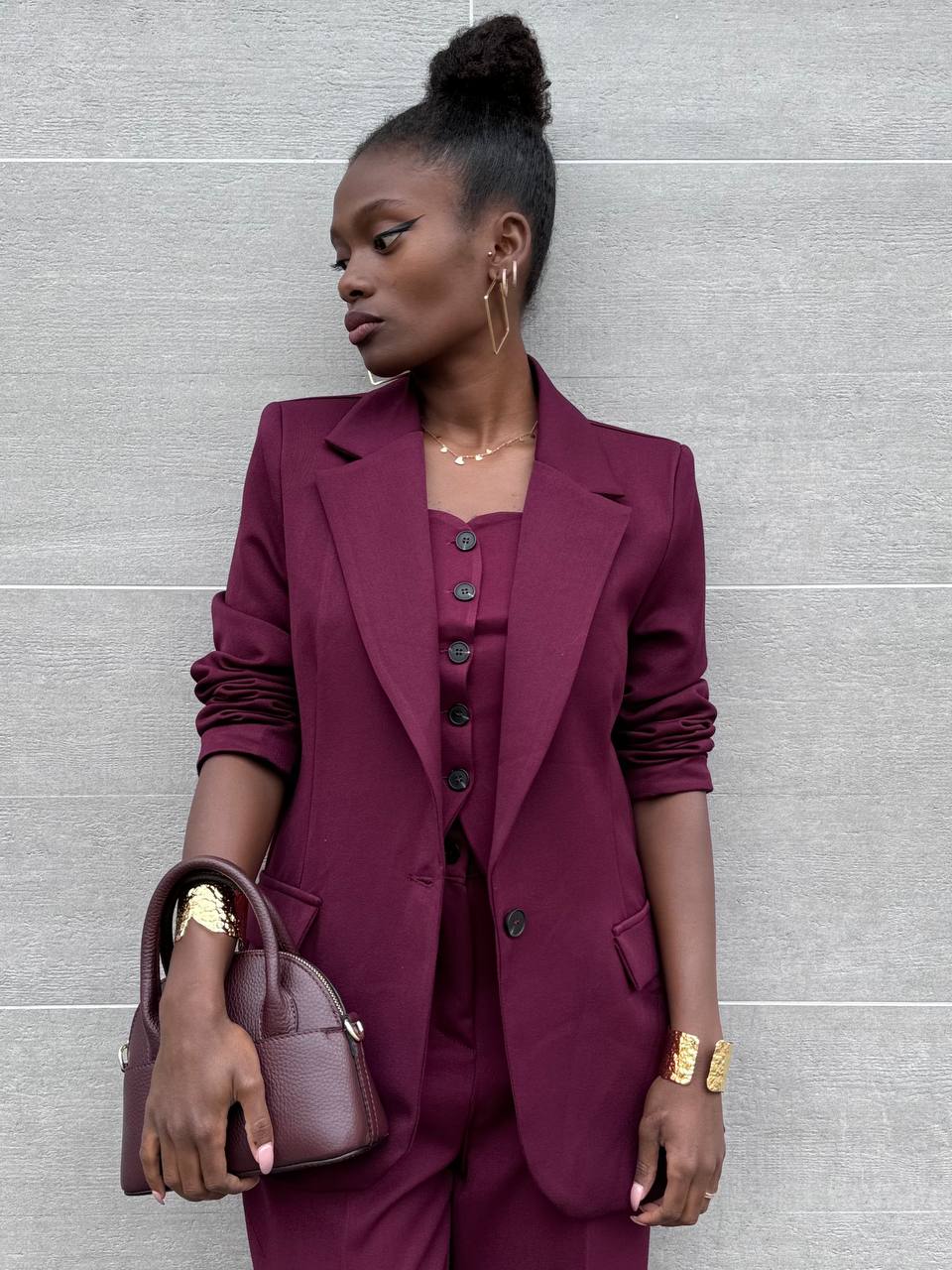 Blazer con spallina insellata a tinta unita con un bottone di chiusura con finte taschine laterali.