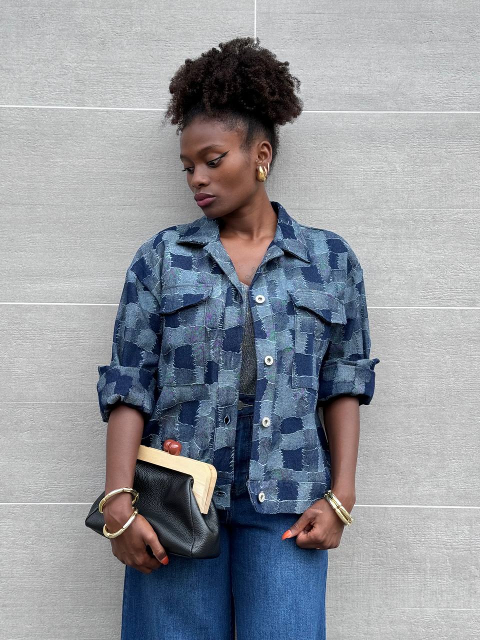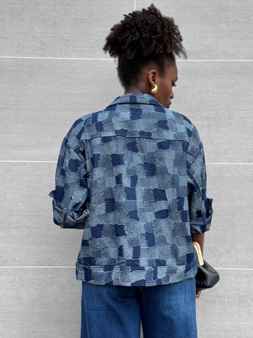 Giacca in denim con dettaglio di bottoni su tutta la lunghezza.