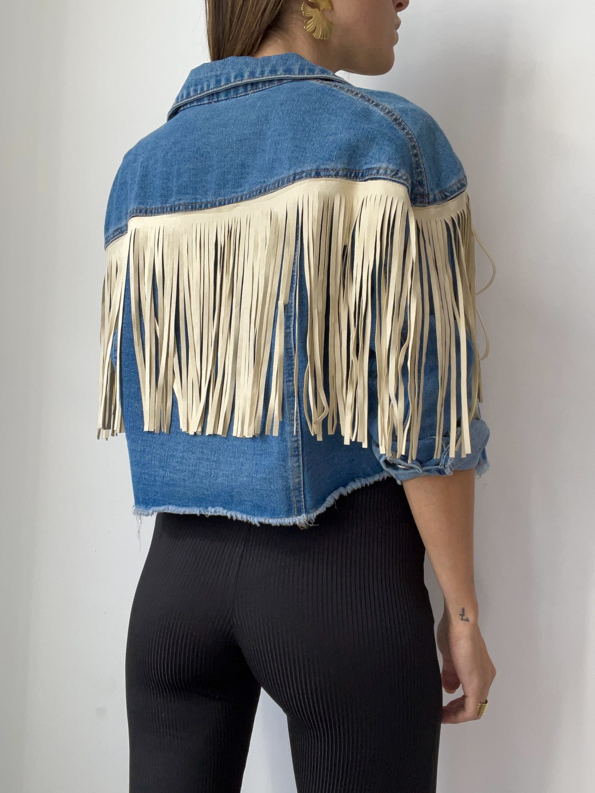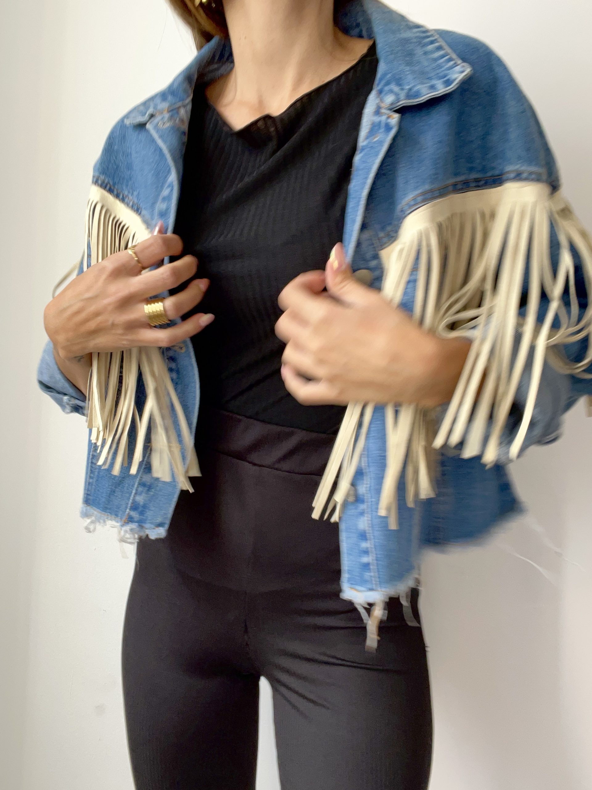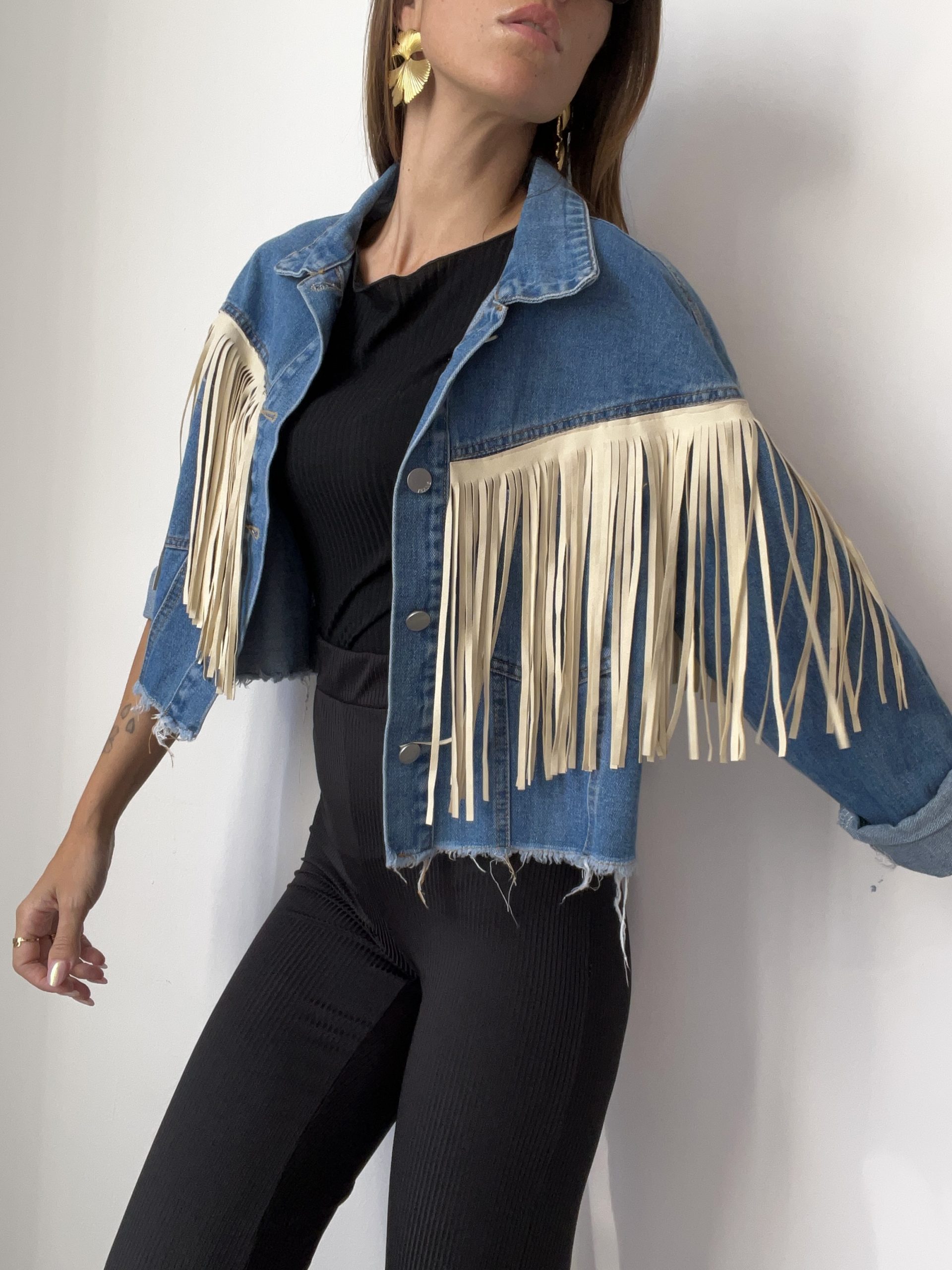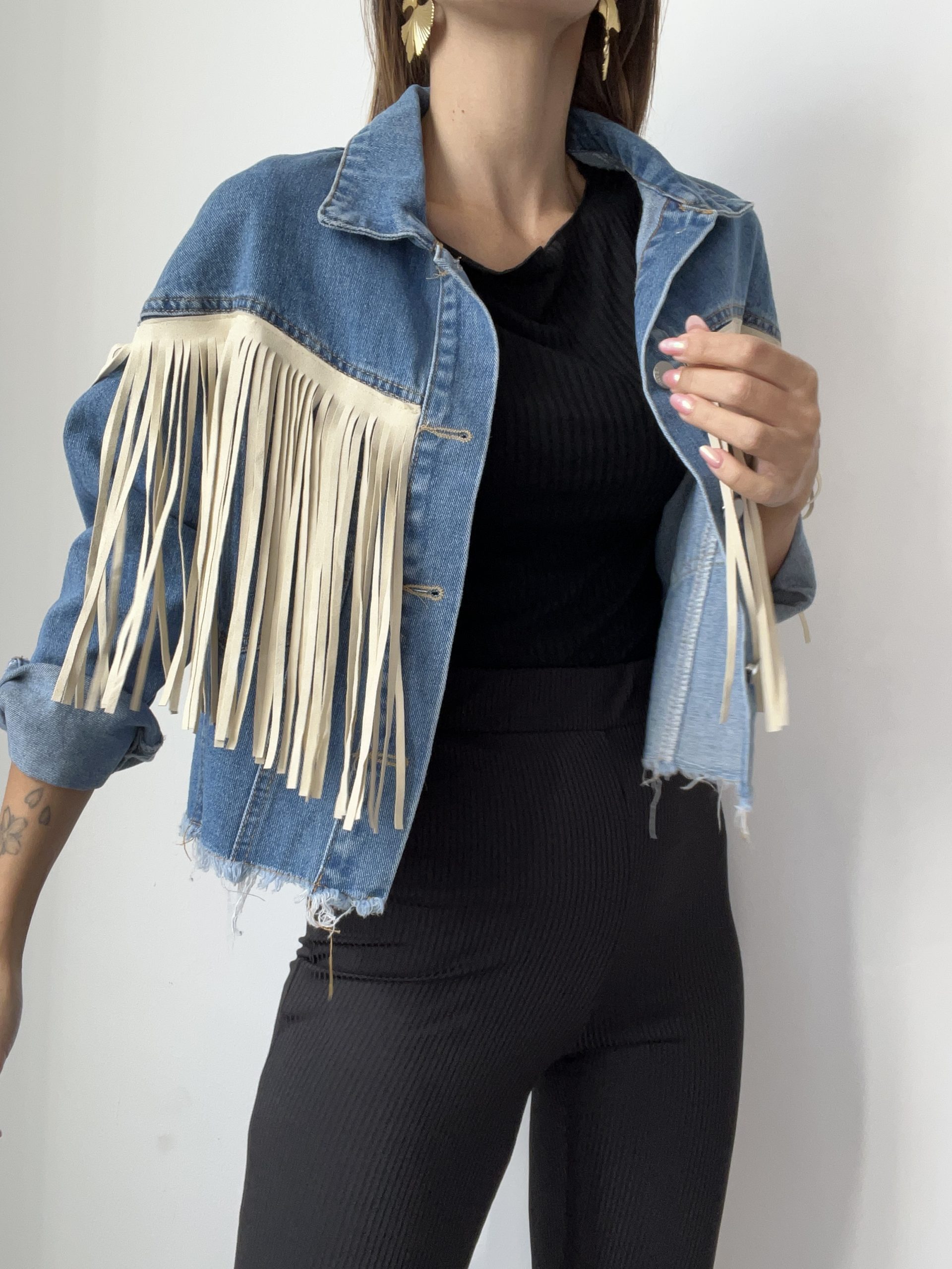 Giacca in denim con frange con manica ampia