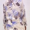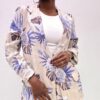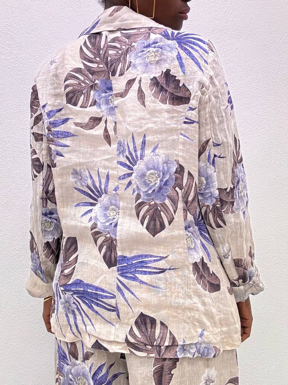 Giacca in lino con stampa fiorata con dettaglio di bottone di chiusura.