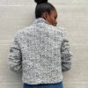 Giacca in tweed in misto lana con dettaglio di applicazioni sulla parte laterale.