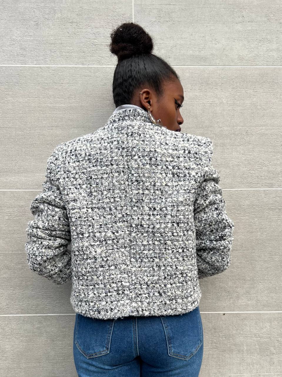 GIACCA IN TWEED MISTO LANA GRIGIO CHIARO
