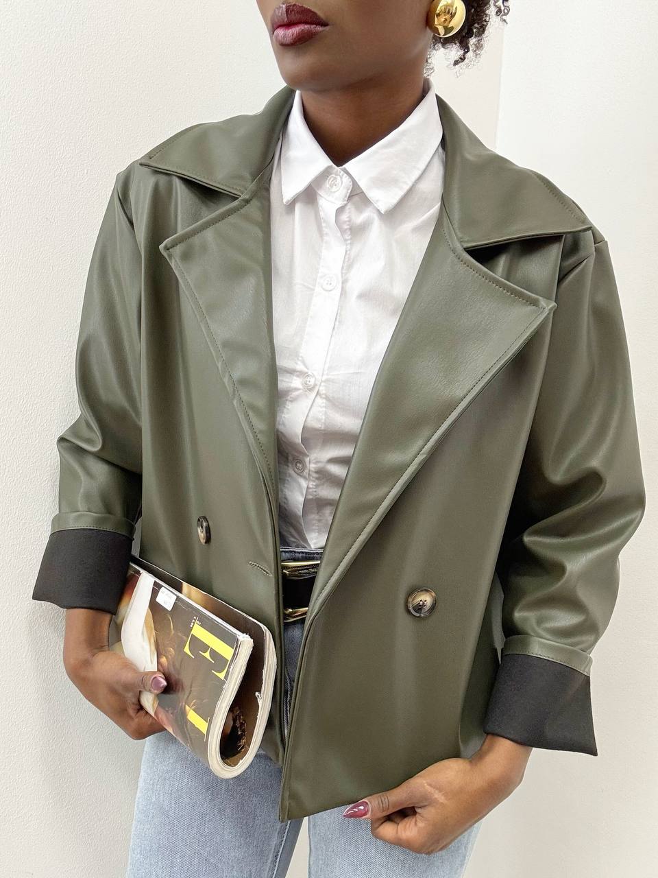 GIACCA KALIMBA IN ECOPELLE VERDE MILITARE