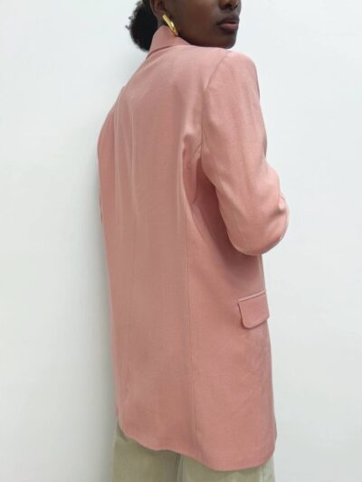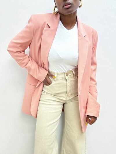 Giacca a monopetto Elegante e dal carattere deciso, questa giacca monopetto a maniche lunghe si distingue per il suo raffinato tono salmone, perfetto per la stagione primaverile ed estiva. Il taglio moderno con chiusura a mono bottone valorizza la figura, mentre i revers classici e le tasche con pattina aggiungono un tocco sartoriale. Realizzata in un tessuto leggero e traspirante, è ideale per occasioni formali, cerimonie o look casual chic.