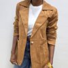 Elegante giacca in suede, dallo stile essenziale ma curato nei dettagli. Caratterizzata da una chiusura frontale con bottoni e pratiche tasche laterali, unisce funzionalità e raffinatezza. Il taglio pulito e la texture morbida del suede rendono questo capo perfetto per completare look casual o più ricercati, con un tocco di classe senza tempo.