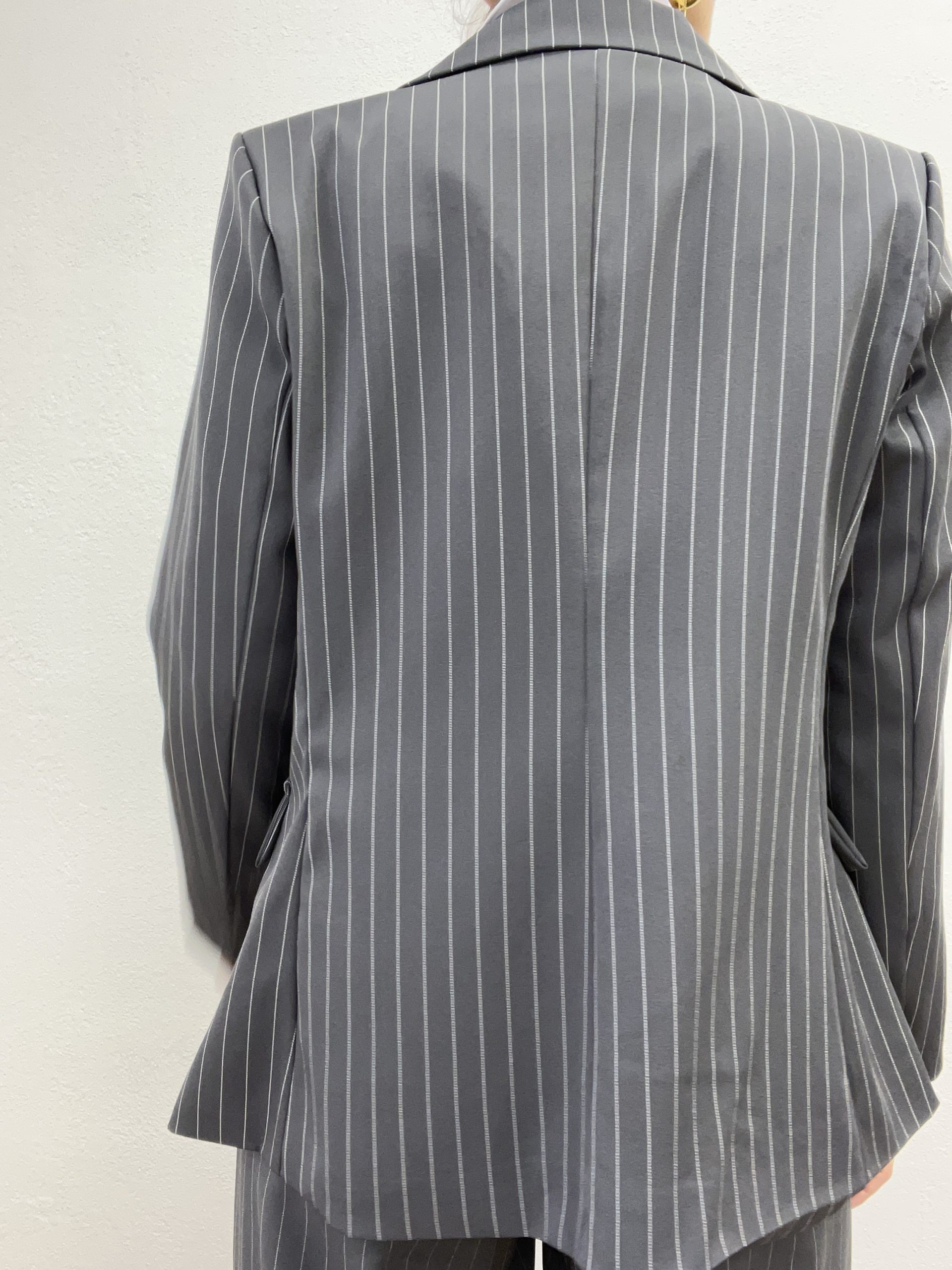 Giacca mono bottone leggermente avvitata con spallina leggermente insellata.