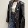 Essenziale e decisa, questa giacca in ecopelle nera unisce stile e carattere in un design intramontabile. La chiusura centrale con tre bottoni dona un tocco classico e strutturato, mentre le due taschine frontali centrali aggiungono funzionalità senza rinunciare all’eleganza. Realizzata in morbida ecopelle dall’effetto liscio e leggermente lucido, è la scelta perfetta per completare look urban-chic o aggiungere un twist contemporaneo a un outfit formale. Un capo versatile, ideale per ogni stagione.