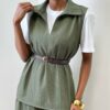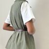 Il punto vita è enfatizzato dal cinturino integrato, un dettaglio funzionale e raffinato che permette di regolare la vestibilità e definire le forme con naturalezza. L’assenza di maniche rende il capo versatile e moderno, perfetto da indossare sia da solo per un look deciso, sia sopra camicie o top per outfit più stratificati.