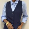 Gilet smanicato dal design essenziale ed elegante, caratterizzato da una chiusura frontale con quattro bottoni che ne valorizzano la linea. Il capo presenta due finte taschine sul davanti, dettaglio decorativo che aggiunge un tocco sartoriale senza appesantire il design.