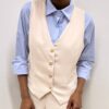 Gilet smanicato dal design essenziale ed elegante, caratterizzato da una chiusura frontale con quattro bottoni che ne valorizzano la linea. Il capo presenta due finte taschine sul davanti, dettaglio decorativo che aggiunge un tocco sartoriale senza appesantire il design.