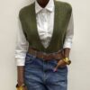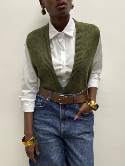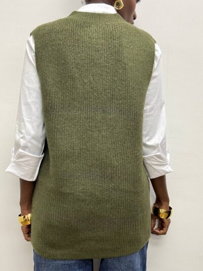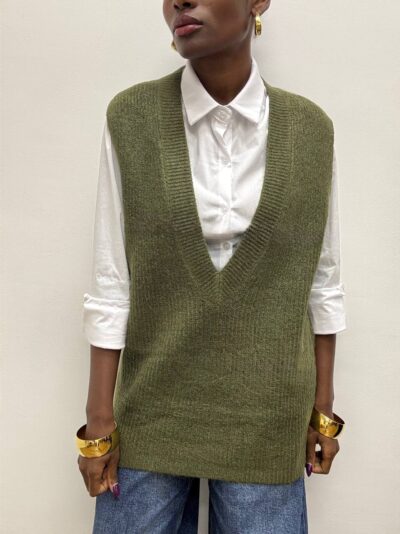 Gilet smanicato con elegante scollo a V, realizzato in maglia a costine elasticizzata che abbraccia delicatamente la figura senza costringere. Il tessuto confortevole e flessibile garantisce una perfetta vestibilità, mentre la lavorazione a costine aggiunge un tocco moderno e dinamico. Un capo versatile, ideale da indossare da solo o abbinato a camicie e top per completare look casual o più ricercati.