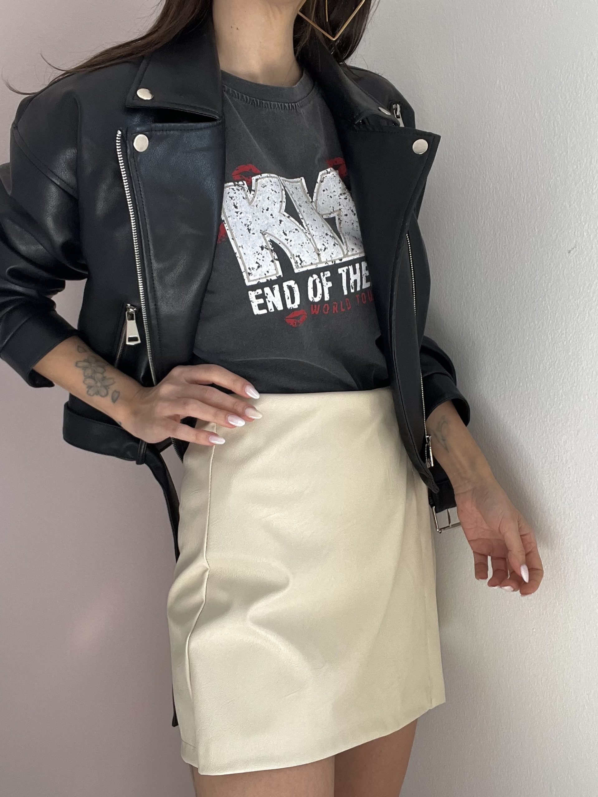 Shorts in ecopelle incrociato con zip di chiusura posteriore.