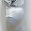 Il design è pulito e minimale, arricchito dalla chiusura con cerniera laterale che garantisce una vestibilità pratica e una linea ancora più armoniosa e lineare. Questo dettaglio, discreto ma funzionale, permette di mantenere il focus sull’eleganza del tessuto e sulla semplicità del taglio.
