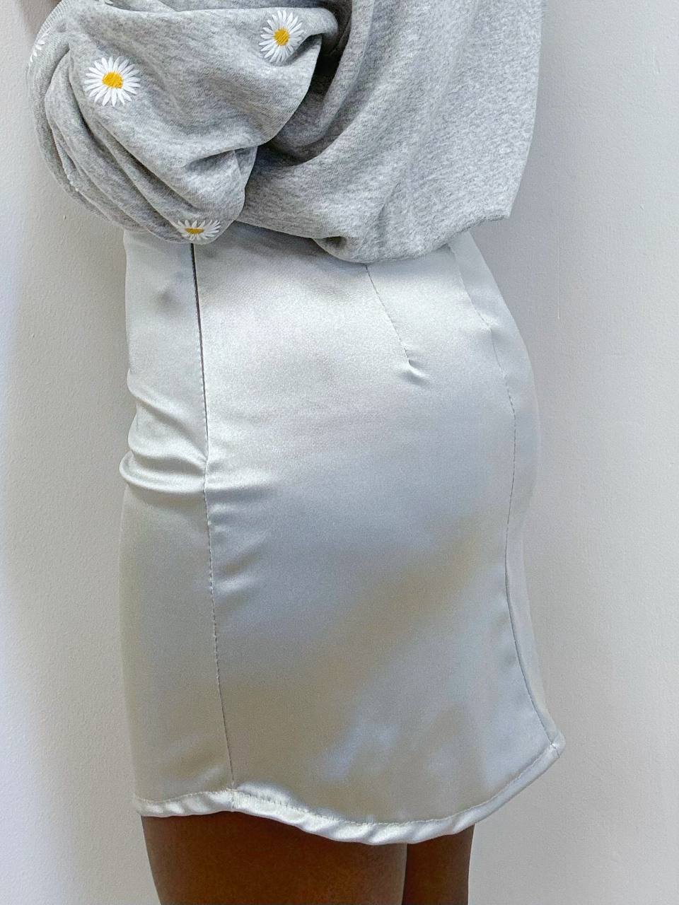 Una gonna dall’eleganza essenziale e contemporanea, realizzata in tessuto effetto raso che dona al capo una superficie liscia e luminosa, capace di riflettere la luce con discreta raffinatezza. La texture morbida scivola delicatamente, valorizzando la silhouette con un effetto fluido e femminile.