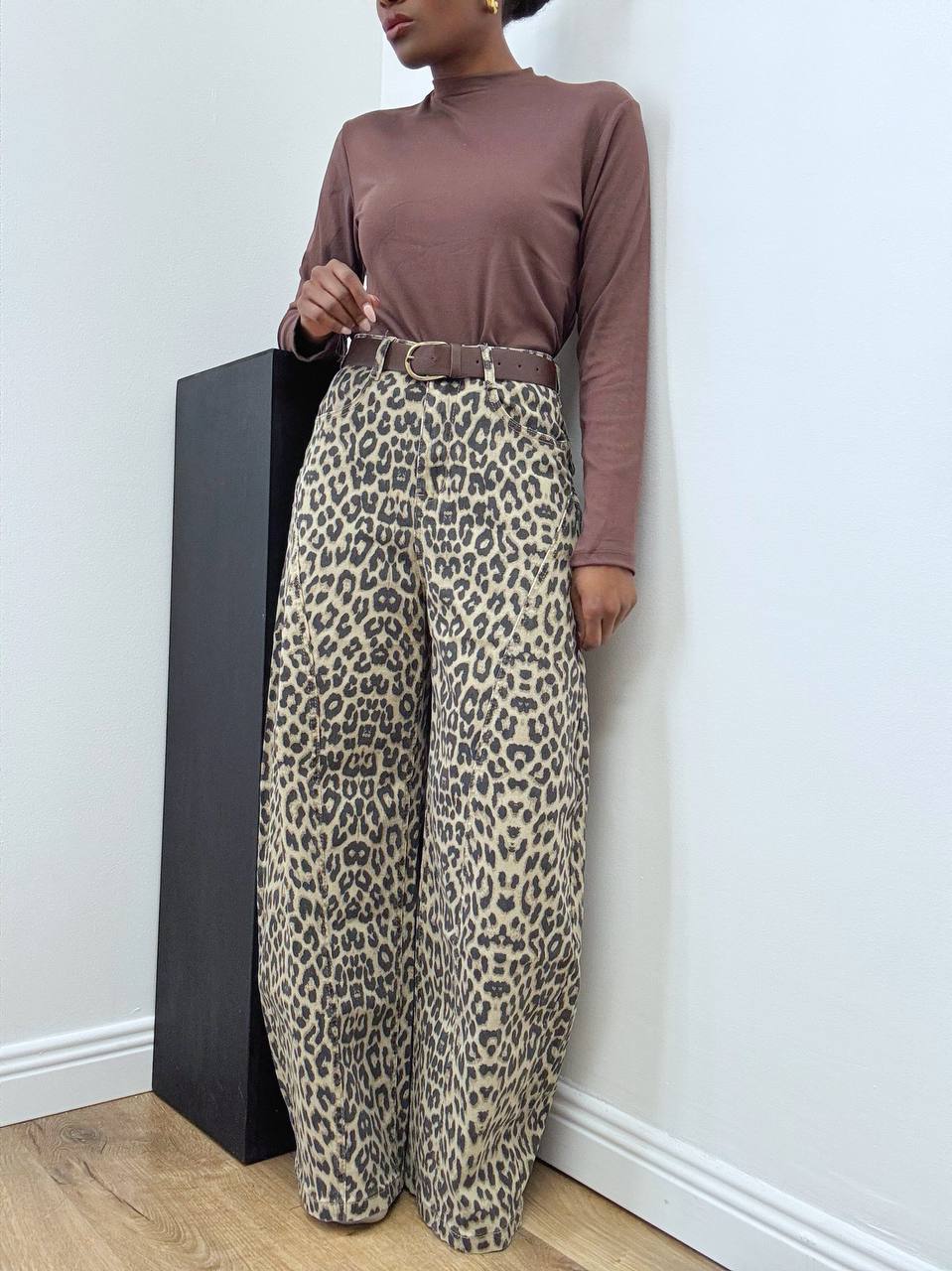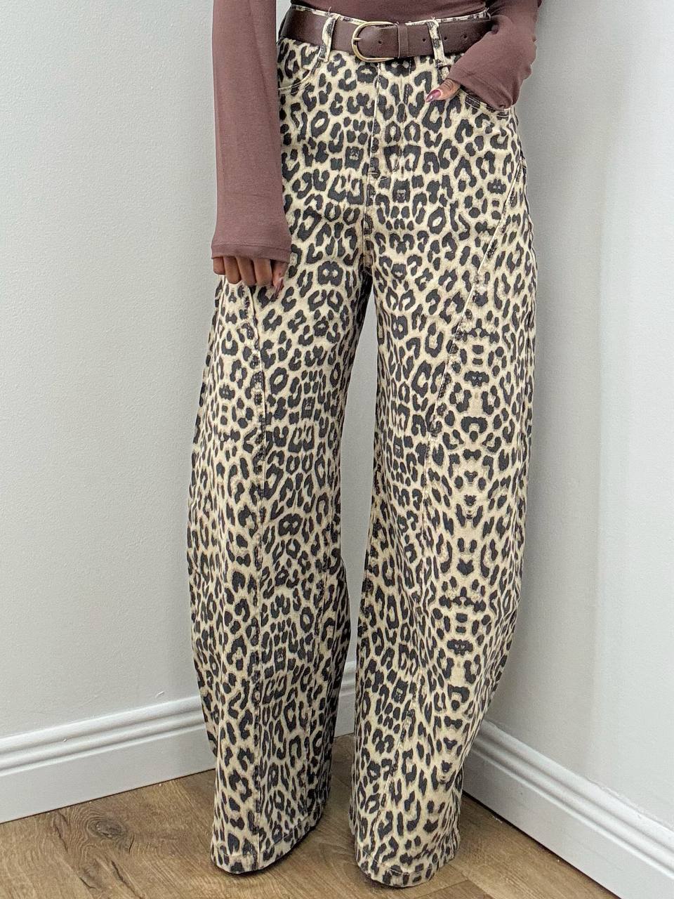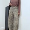 Jeans modello balloon dal design contemporaneo, caratterizzato da una silhouette ampia e arrotondata che si stringe leggermente alla caviglia, valorizzando la figura con uno stile moderno e rilassato. Realizzato in denim resistente, presenta una grintosa stampa animalier che dona personalità e un tocco audace al look.