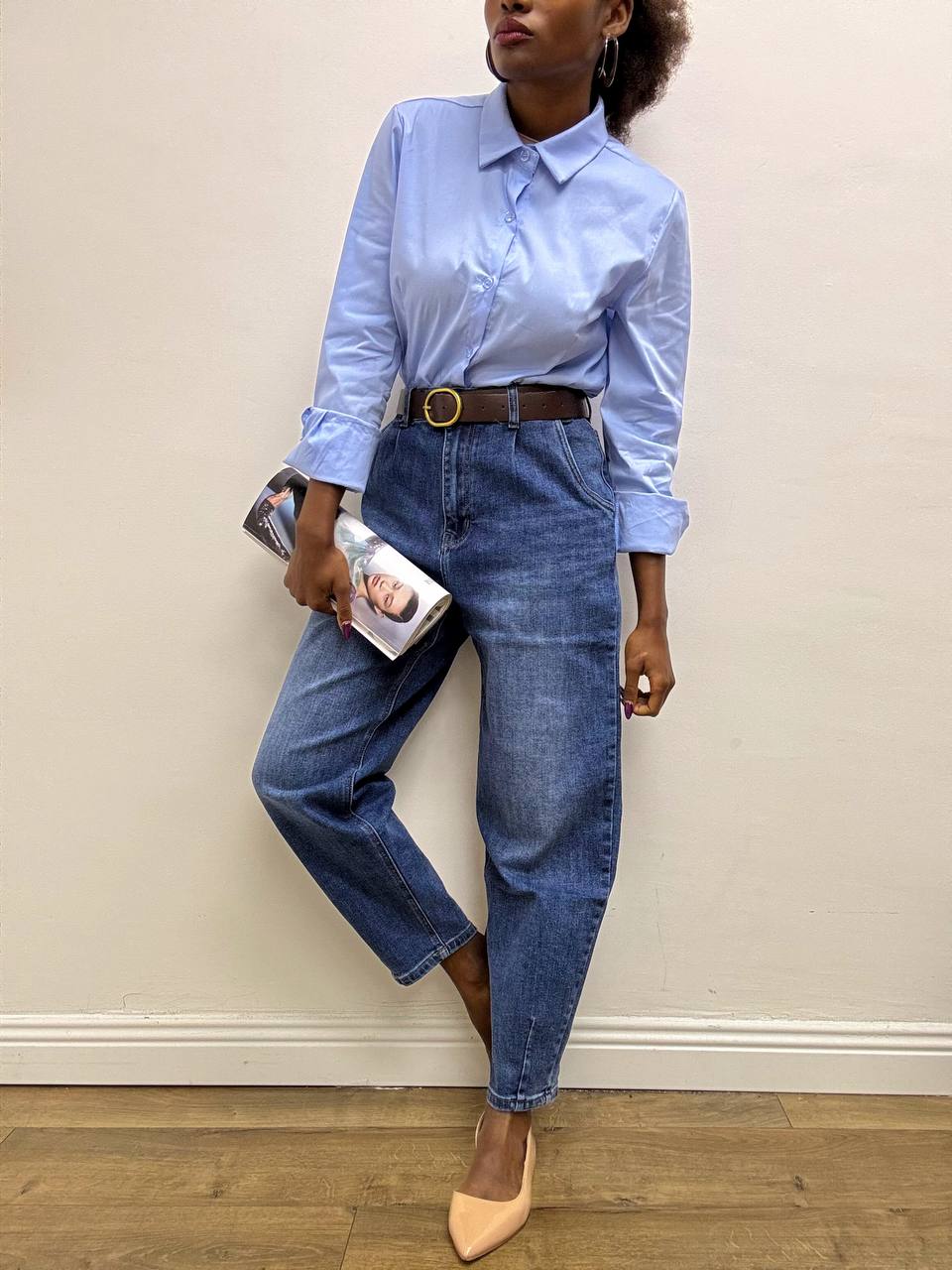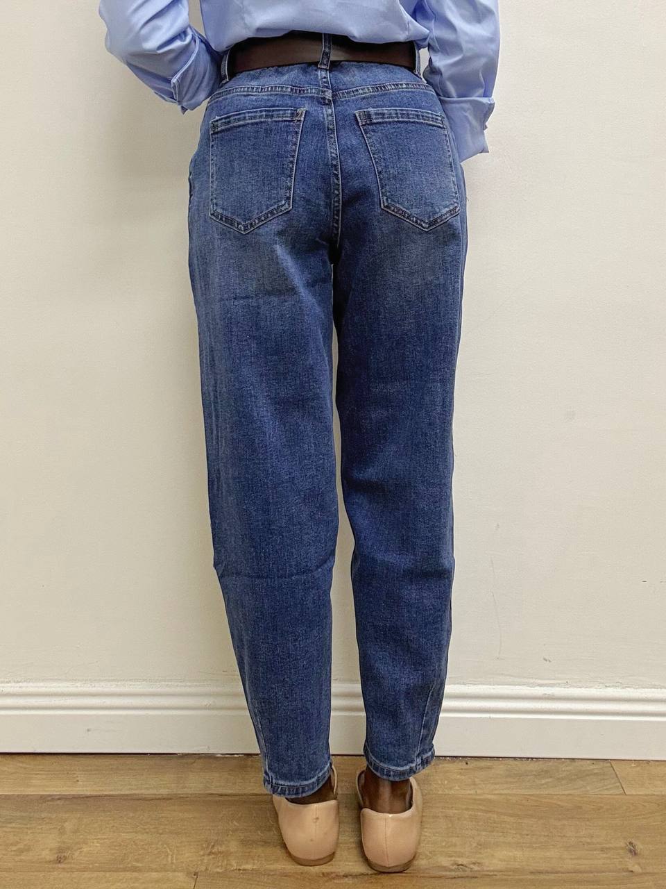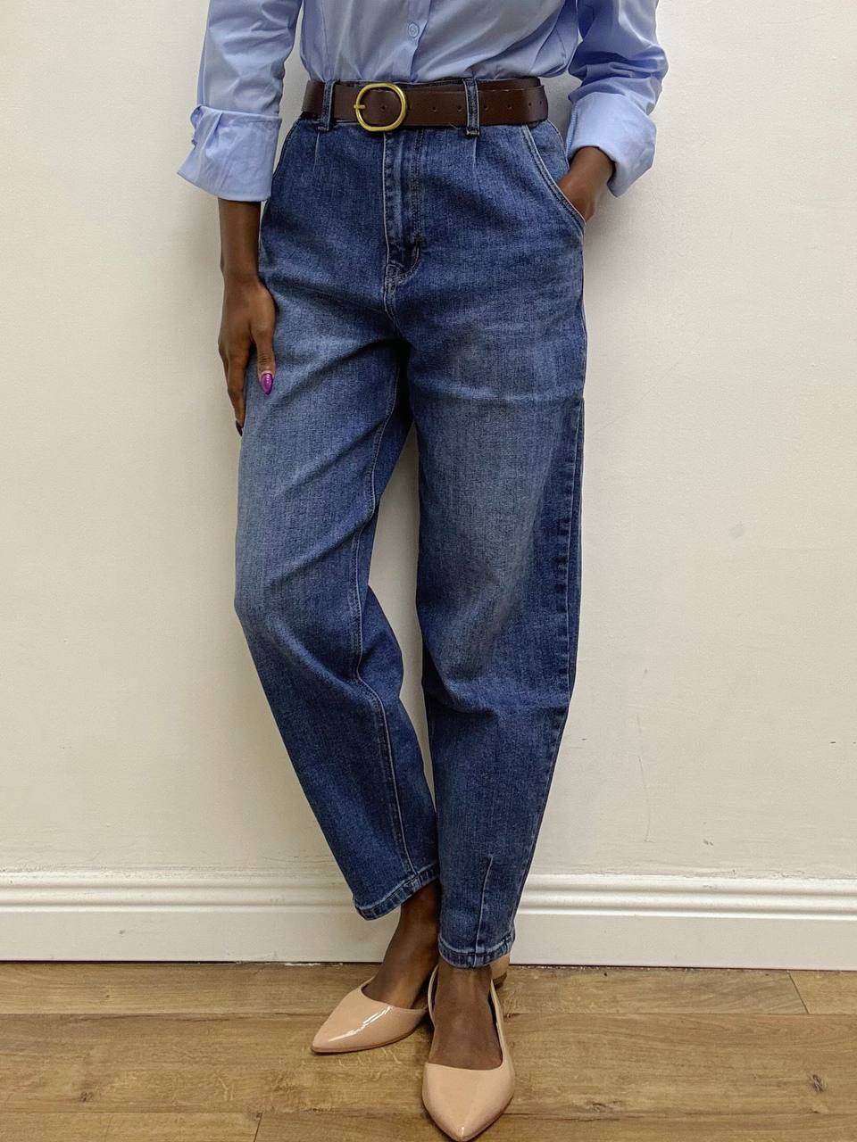 Jeans modello barrel dallo stile contemporaneo, caratterizzato da una gamba ampia e leggermente affusolata verso il fondo, per un look moderno e di tendenza.